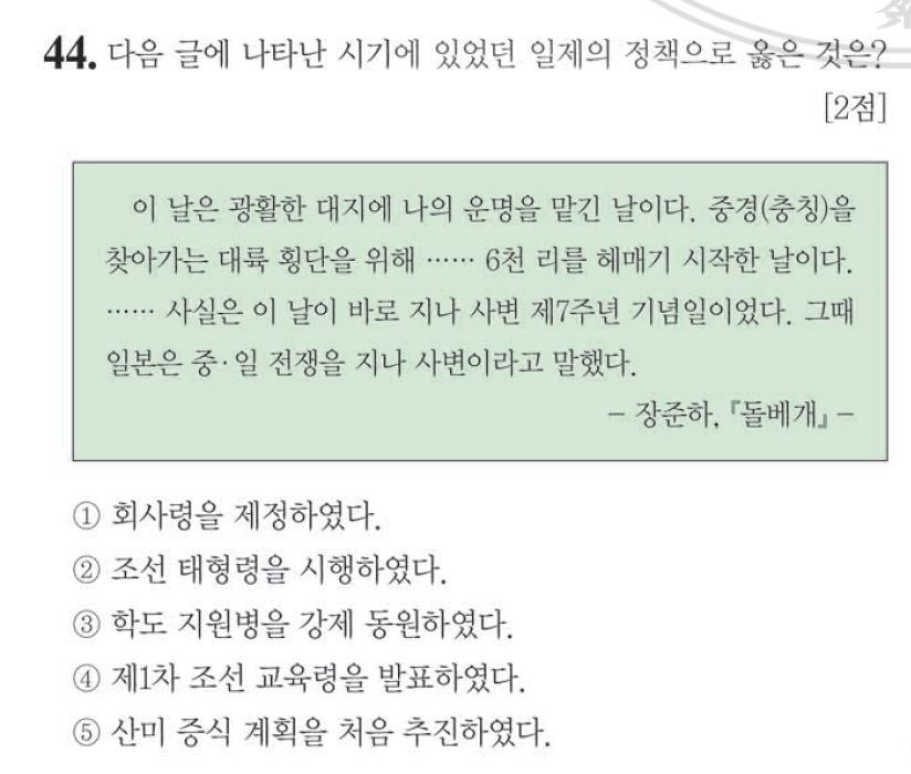 그래서 처음부터 끝까지 다시 살펴보며 잘 마킹이 되었는지, 내가 잘못 이해한 부분이 없는지 살펴보기 시작했다. 그랬더니 44번의 답을 고치고 싶은 생각이 들더라. 아직 65분이 되기까진 10분 정도의 시간이 남았던 터라 고치기엔 충분한 시간이었지만, 고작 한 문제 때문에 다시 고치다가 괜히 실수를 하여 다른 문제까지도 여파가 있을까봐 망설여졌다. 마치 소탐대실(小貪大失)과 같은 느낌도 들었고, 44번의 고치려는 답이 맞다는 보장도 없었으니 말이다. 하지만 이렇게까지 맘이 든 이상 고치지 않고 후회하느니, 고치고 나서 후회하는 게 낫다란 생각이 들었고 그에 따라 답안지를 달라고 손을 들어 표시를 했다. 답지를 받자마자 맹렬히 다시 체크하기 시작했고, 어쨌든 65분 안에 마무리를 지을 수 있었다.