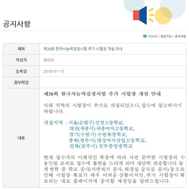 이런 이유로 7년 만에 임용을 보러 맘먹으면서 한국사 능력시험은 당연히 갖춰야 차후를 논할 수 있는 것이기에 봐야만 했다. 단재학교를 그만뒀을 때가 운좋게도 한국사능력시험 1차 모집을 하고 있던 때였다. 그때만 해도 임용공부를 할 생각이 없던 때라 전혀 눈 여겨 보지 않던 때였다. 그런데 준규샘을 만나고 온 이후 맘을 정했고 그에 따라 그 주말에 신청을 하려고 하니, 이미 모든 고사장이 꽉 차서 신청할 수도 없는 상황이었다. 사람들이 너무 많았는지 서울뿐 아니라 각 지역별로 사람들이 넘치고도 넘쳐서 도무지 시험을 볼 수 없더라. 그래서 전북은 물론 제주까지 알아보는 데도 신청할 수 있는 자리조차 없었다.