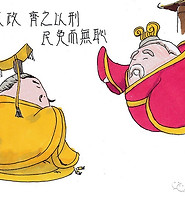 ○ 도덕과 예교로 정치하는 것을 말하는 것으로 공자가 논어 ‘위정’ 편 첫머리에서 한 말이다. “정치를 덕으로 하는 것은, 비유하자면 마치 북극성이 자리를 지키고 있고, 다른 모든 별이 함께 그를 떠받들어 도는 것과 같다[爲政以德, 譬如北辰, 居其所而衆星共之].” 이 말은 ‘위정’ 편의 핵심으로 바로 이 편의 세 번째 문장의 말과 긴밀하게 연계된다. 즉 “정령(政令)으로 이끌고 형벌로 다스리면, 백성들은 ‘법망을 교묘하게’ 빠져나가고도 부끄러움을 모른다. 덕으로 이끌고 예로써 다스리면 ‘백성들은’ 부끄러워할 줄도 알고 ‘잘못을’ 바로잡게 된다[道之以政, 齊之以刑, 民免而無恥. 道之以德, 齊之以禮, 有恥且格].” 이 문장에서 ‘격(格)’은 규정을 엄격하게 준수하는 것이며 일정한 법도와 규범을 두고 관리하여 선함에 이르게 한다는 의미로서 빠져 나간다는 의미의 ‘면(免)’과는 상반되는 개념이다. 공자는 정령과 형벌이라는 인위적이고 강제화된 정치를 반대하였는데, 그 이유는 별 효과도 없을 뿐만 아니라 ‘부끄러움’을 알지 못한다는 것이다.