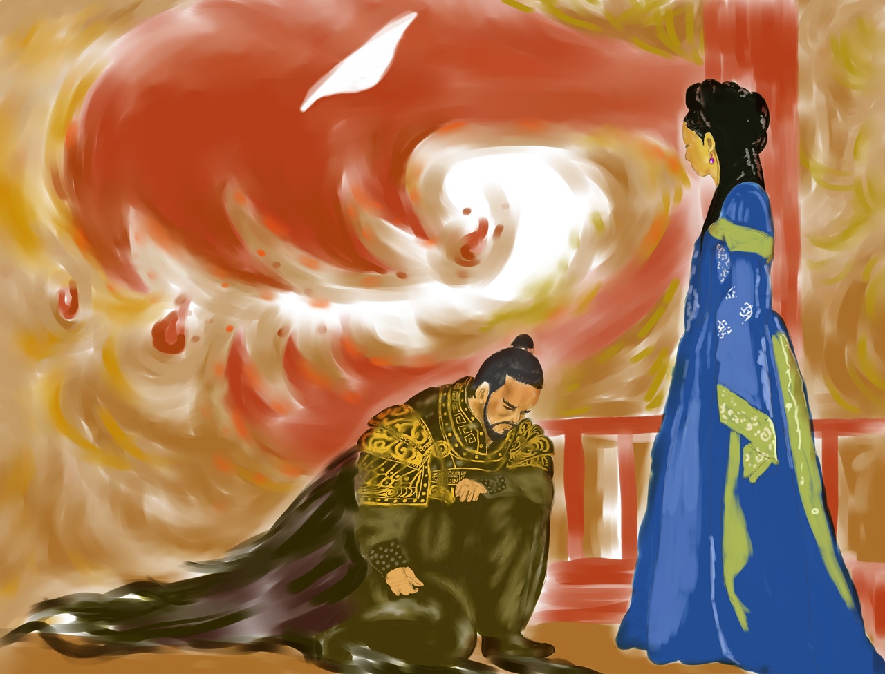 | 幡旗旣赫赫 鉦鼓何煌煌 | 나부끼는 깃발은 이미 반짝반짝이고 징과 북소리는 어이 그리도 쾅쾅거리는고 |