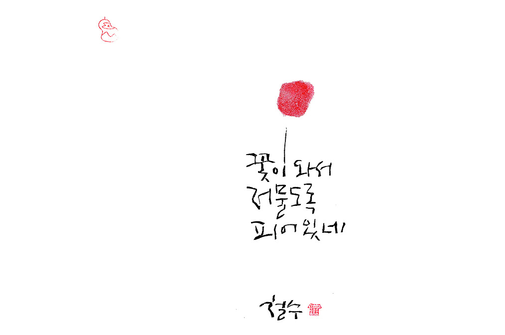 아무 것도 안 보이는 허공에 쓴 글은 쓰나마나 한 글이다. 아무 것도 보이지 않는 캄캄한 밤에 만난 너는 만나나 마나한 존재다. 만나나 마나 한 존재를 위해 쓰나마나한 글을 쓰며 살았다. 무슨 말인가? 너는 누구인가? 왜 내가 쓴 글을 ‘너’가 읽지 않고 돌들이 읽는가? 이런 언어 앞에 의미화의 노력은 대부분 수포로 돌아간다. 하지만 그 너머에 무언가 있다. 그것이 무엇인가?