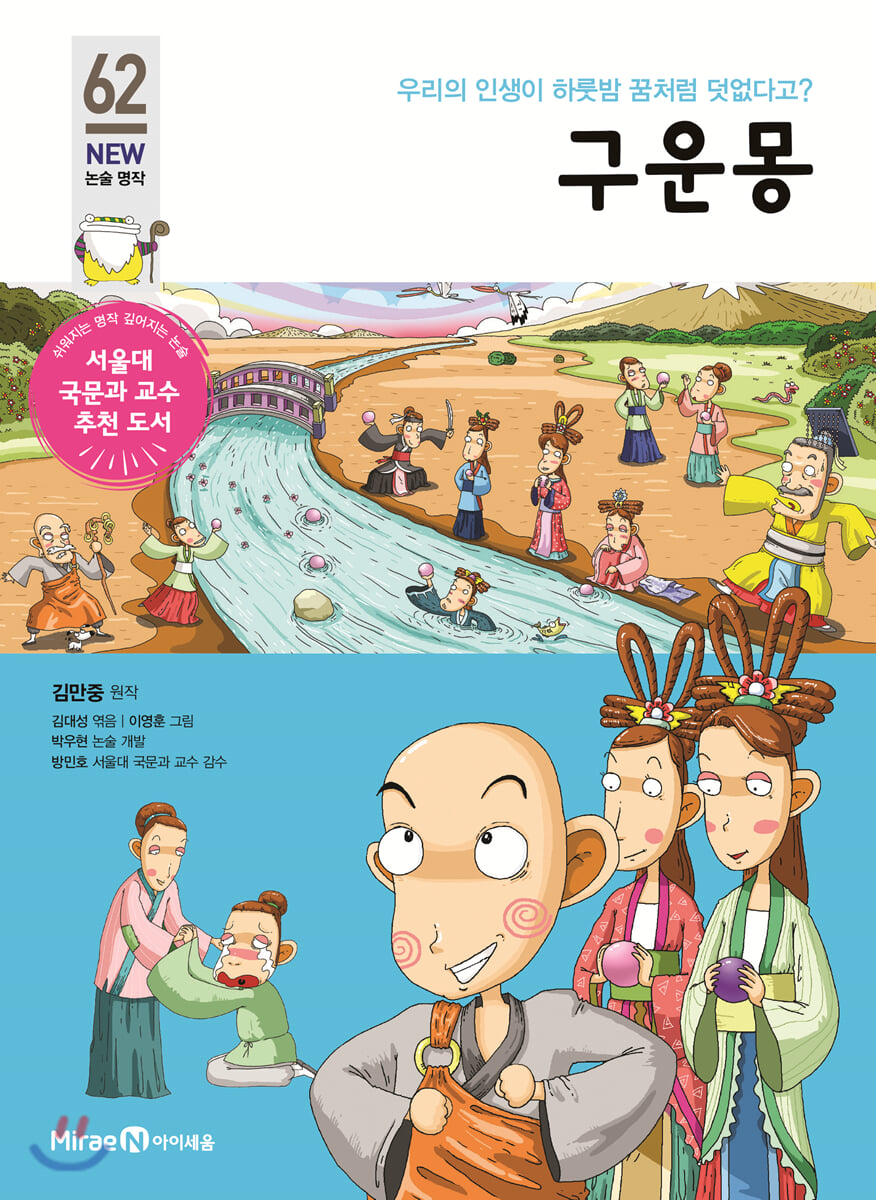 「구운몽(九雲夢)」은 ‘신선 세계를 향한 꿈’을 노래한 작품이다. 유선적(遊仙的) 상상력이 빚어낸 도교적 깨달음이 그 바탕에 깔려 있다. 팔선녀의 상전은 남악형산(南嶽衡山)의 위부인(魏夫人)이다. 그녀는 자허원군영상진사명남악위부인(紫虛元君領上眞司命南嶽魏夫人)이란 긴 이름을 지닌 도교 두 번째 위계의 여신격(女神格)이다. 천지의 주재자인 원시천존(元始天尊)에 버금간다. 성진(性眞)은 인간 세상에 귀양 와 양소유란 이름으로 태어난다. 이름 그대로 인간에서의 삶이란 성性의 진체를 깨닫기 위해 ‘소유(少遊)’, 즉 잠깐 놀다 간다는 의미일 뿐이다.
