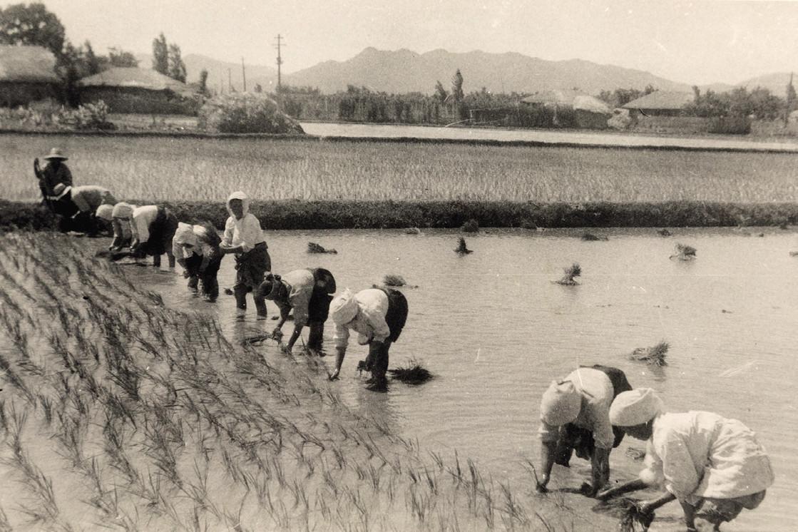 묘가 말라 이앙(移秧)하질 못해 농민이 뽑아 제거하는데