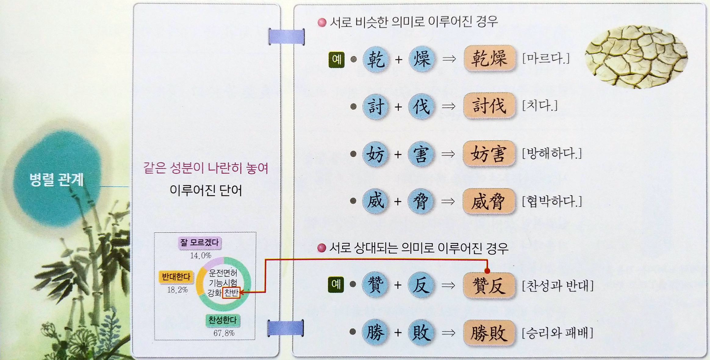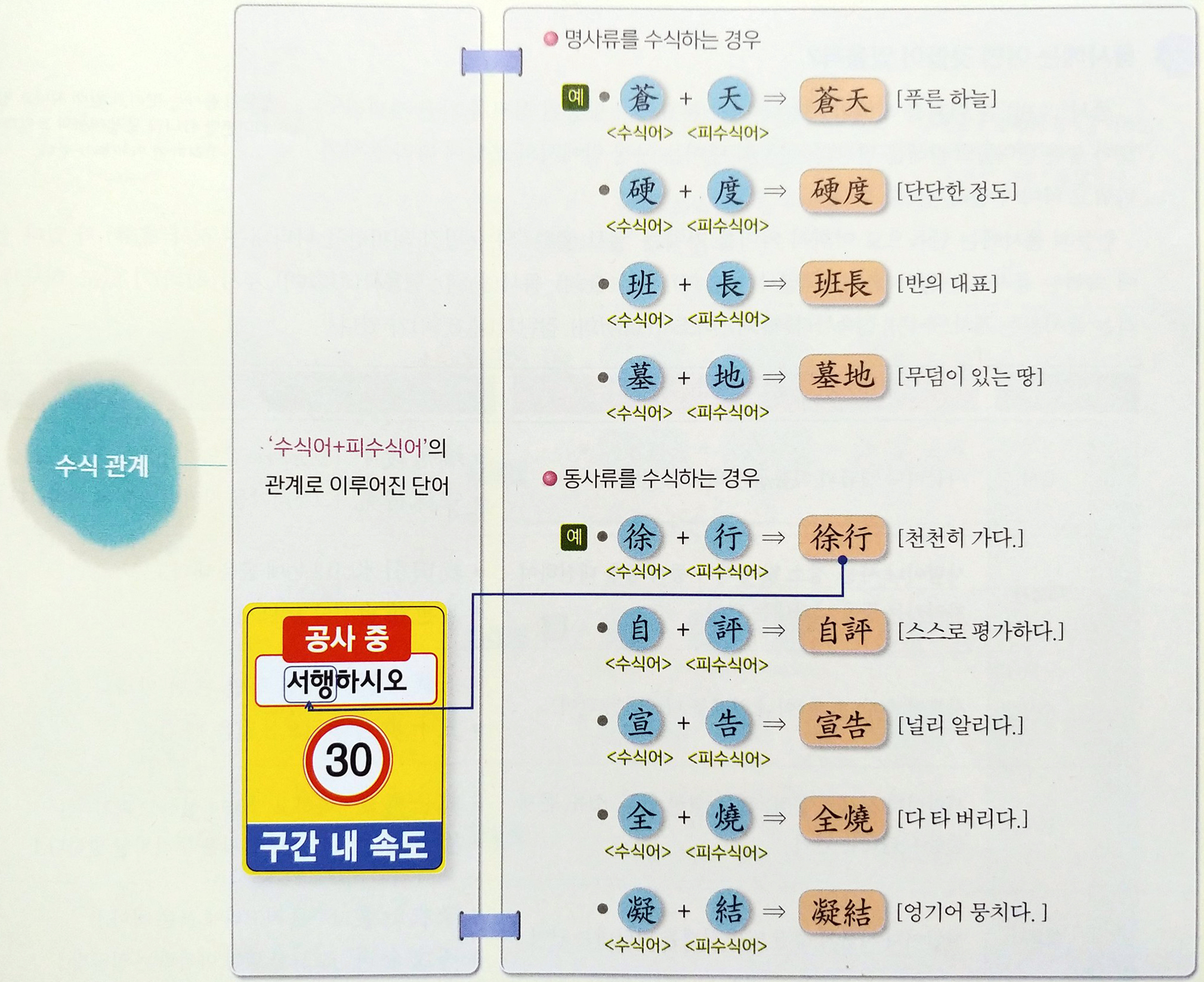 • 단어의 짜임을 구별하기 위해서는 학습자가 흥미를 잃지 않도록 문법적인 내용에 지나치게 치중하지 않도록 한다. 또한 한자 어휘의 조어(造語) 방법을 이해하고 단어와 성어의 풀이, 한문 독해에 활용할 수 있도록 지도한다.