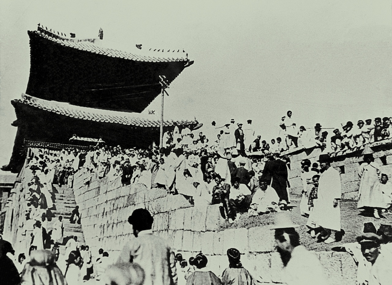▲ 3월 3일에 있을 고종의 장례식을 앞두고 기미독립운동인 3.1운동이 펼쳐졌다. 남대문에 모인 사람들.
