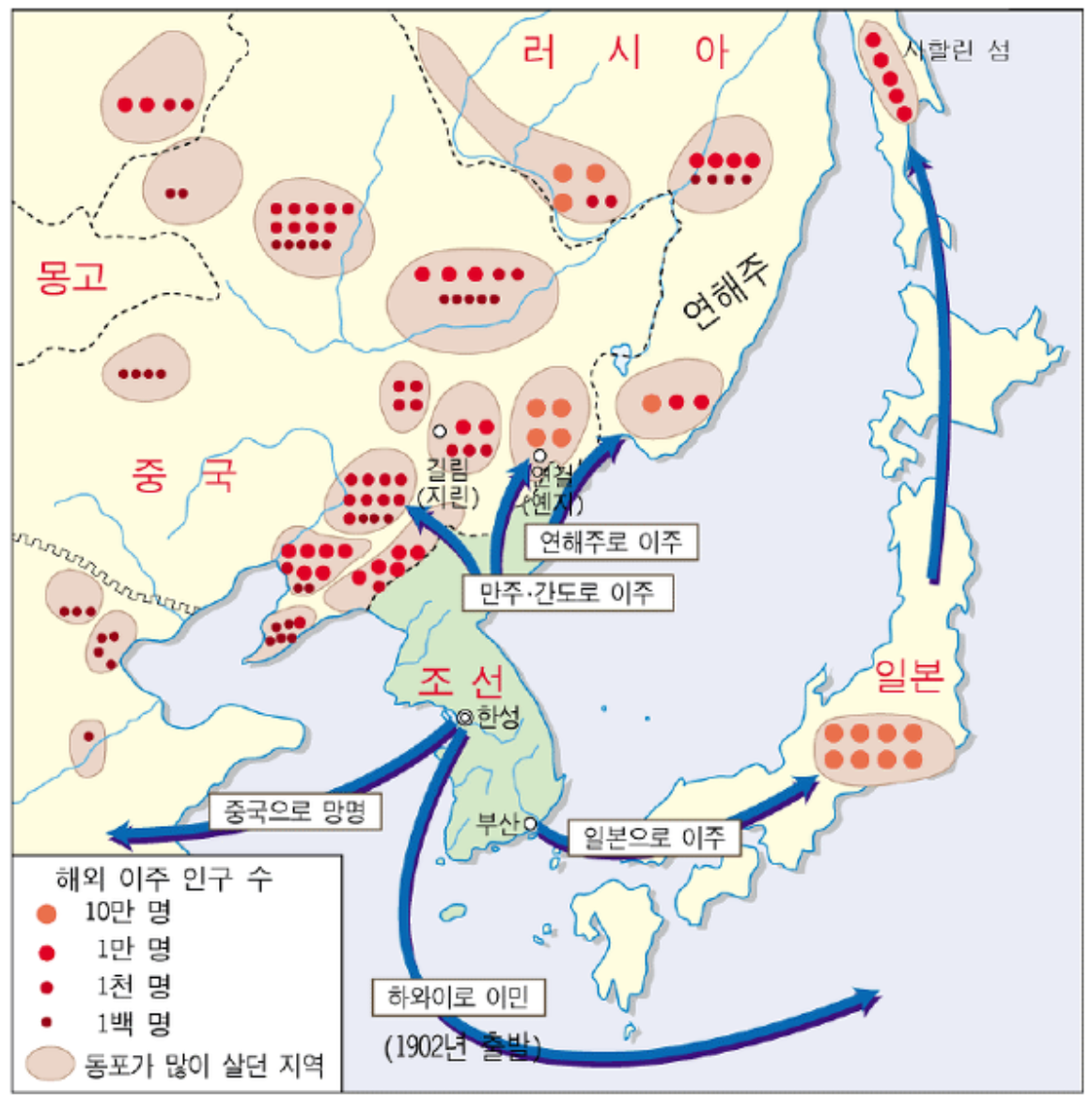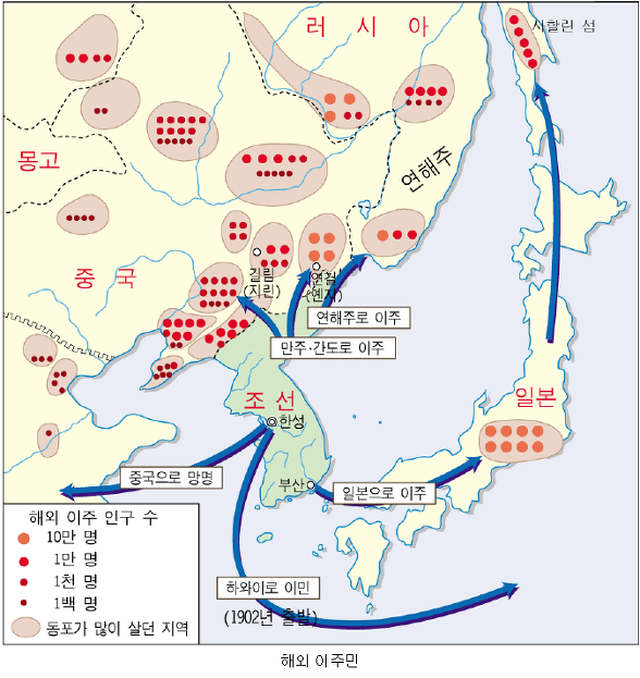 그래 순소작이 있고, 자기 땅 한 2마지기 있으면서 소작도 하는 자소작이 있고, 자작이 있고, 지주가 있지요. 그래 이 자작농들의 땅이 거의 다 뺏기고 동양척식주식회사의 소작인이 되어 버렸어요. 그러고 나서 그들은 여기서 도저히 살 수가 없어요. 왜? 일본놈들이 자꾸 밀려들어요. 안중근 의사한테 죽은 이등박문(伊藤博文, いとうひろぶみ)이란 놈이 식민지 계획을 세울 때 조선에 300만명을 이주시키면. 일본놈 300만명을 이주시키면 영구히 조선을 지배할 수 있다. 그때 우리 조선반도에 한반도에 인구가 대략 2,000만명 정도 됐을 겁니다.