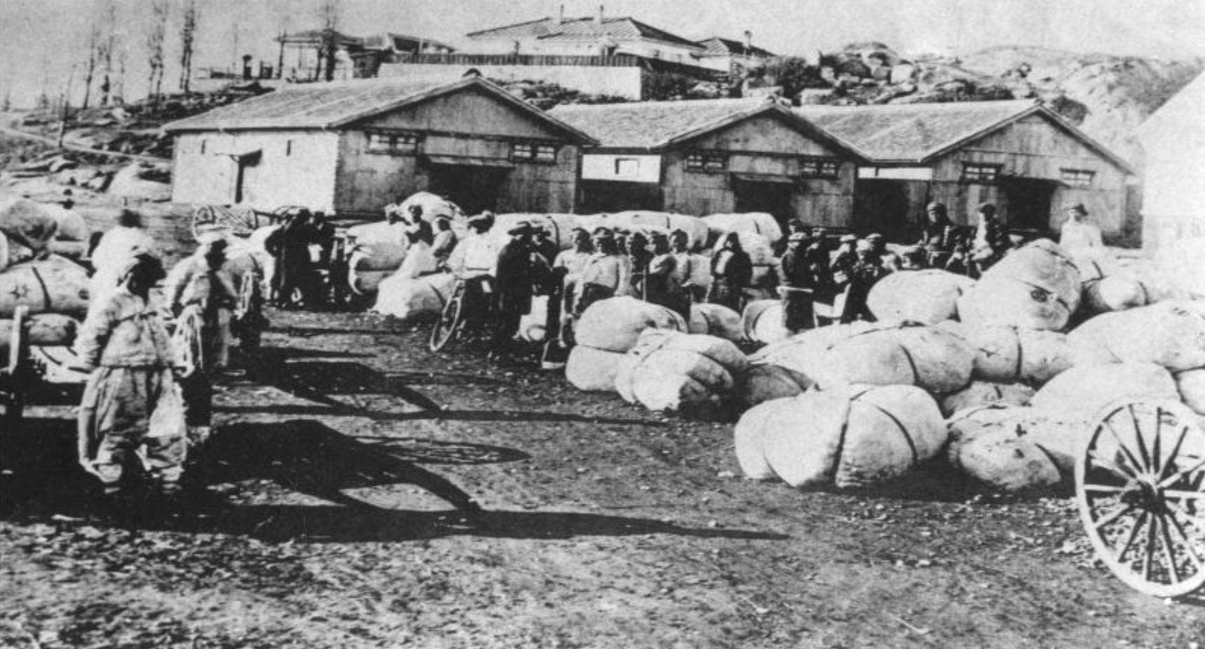 ▲ 군산항에 가득 쌓여 있는 수탈한 쌀들.