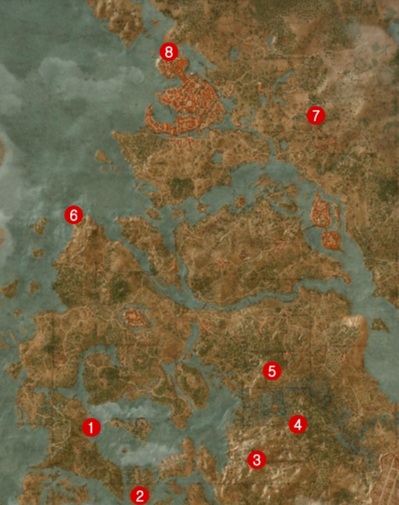 총 6개가 있고 지도가 작은 만큼 지도를 보고 찾는 데 어렵지 않음. 동굴이나 숨겨진 장소가 아닌 위치에 가보면 바로 보여 찾기 쉬움.