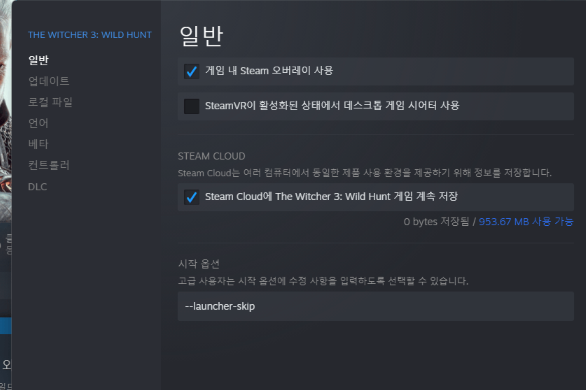 | 위쳐3 속성 → 일반 → 시작 옵션에 ‘--launcher-skip’ 입력 → 실행. | ① 좌동(左同) ② 설치폴더 중 ‘launcher-configuration.json’를 메모장으로 엶 → "fallback": "DirectX 12"을 "fallback": "DirectX 11"로 수정 후 저장 → 실행 |