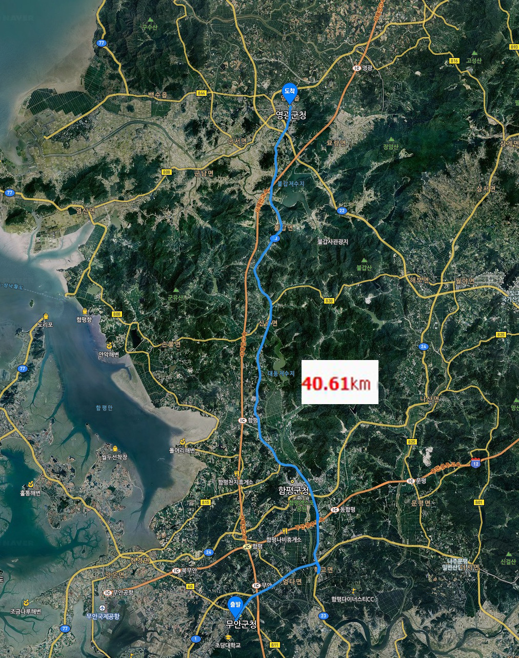 김밥 두 줄을 사고 무작정 걷기 시작했다. 오늘 목표는 영광(40.61km)까지 가는 것이다. 애초에 함평까지만 가려 했는데 12.76km로 4시간 정도 걸으면 충분히 갈 수 있는 거리로 매우 짧은 편이어서 좀 더 무리를 하기로 했다. 더욱이 내일은 수요일이다. 시간에 맞춰 신림에 도착할 수 있다면 오랜만에 교인들도 만나고 예배도 드리며 편하게 잠도 잘 수 있다. 그러니 서두를 수 있을 때 서둘러야 한다. 과연 이게 만용인지, 여행을 시작하는 사람의 의욕인지는 오늘과 내일에 직접 경험해봐야만 안다.