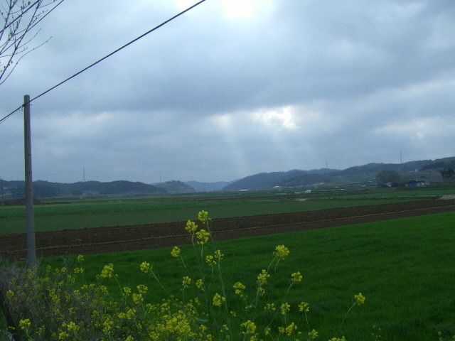 조금 걷다 보니 날씨는 서서히 개어가고 있었다. 하늘은 찌푸려 있었지만 간혹 구름 사이로 햇살이 ‘삐져나오고’ 있었던 것이다. 구름 사이로 삐져나온 햇살은 선명한 빛줄기를 대지에 흩뿌리며 위용을 자랑하고 있었다.