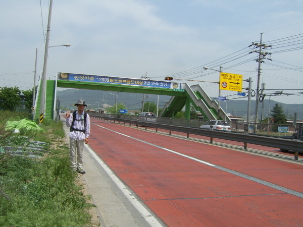 햇볕은 뜨거웠지만 바람이 불어 그나마 괜찮았다. 38번 국도를 따라가는 방법과 325번 지방도를 따라가는 방법이 있다. 국도가 2차선이라면 당연히 거기로 가겠지만 불행히도 4차선이다. 고민할 필요도 없이 지방도로 걷기도 했다. 하지만 지도로 볼 때와는 달리 터미널에서 나와 둘러보는데도 도저히 길을 찾을 수가 없는 거다. 그렇게 한 시간 정도를 헤맸나 보다. 날씨도 덥고 괜히 시간 낭비만 하는 것 같아 어쩔 수 없이 38번 국도로 갔다.