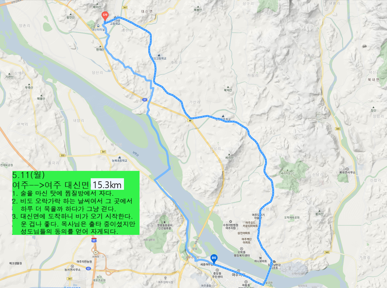 | 2009년 국토종단 - 76. 과한 음주가 이리도 여행을 힘들게 하다[여주 시내⇒여주 대신면](09.05.11.월) (0) | 2021.02.07 |