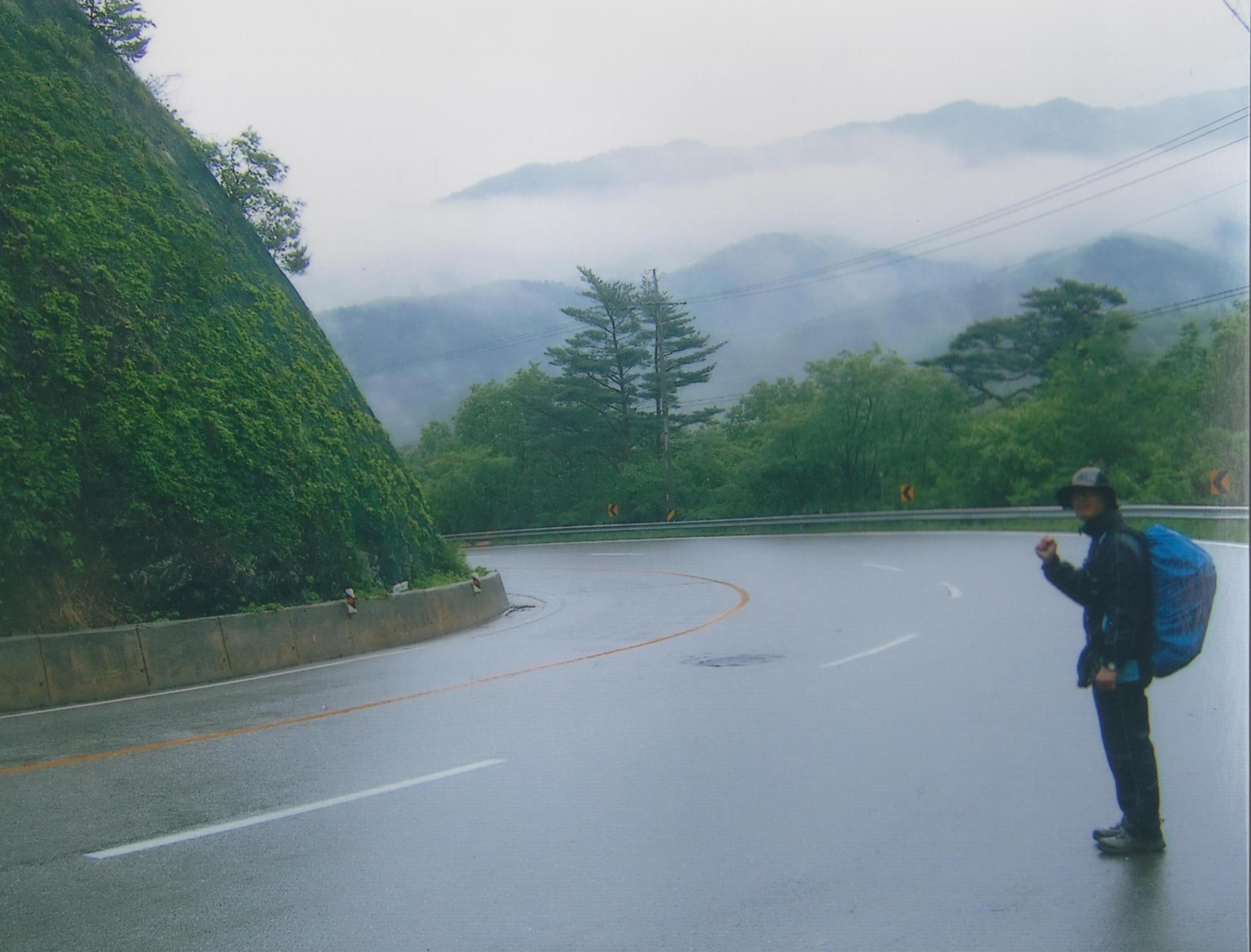 몇 번이고 손을 흔들었더니 차를 세워 주시더라. 나 같았으면, 그냥 지나쳤을지도 모른다. 비에 흠뻑 젖은 낯선 사람이니 간첩이나 강도로 충분히 오해할 만하다. 창문에 대고 “국토종단 중인데 간성까지 태워주세요.”라고 한 마디 했다.