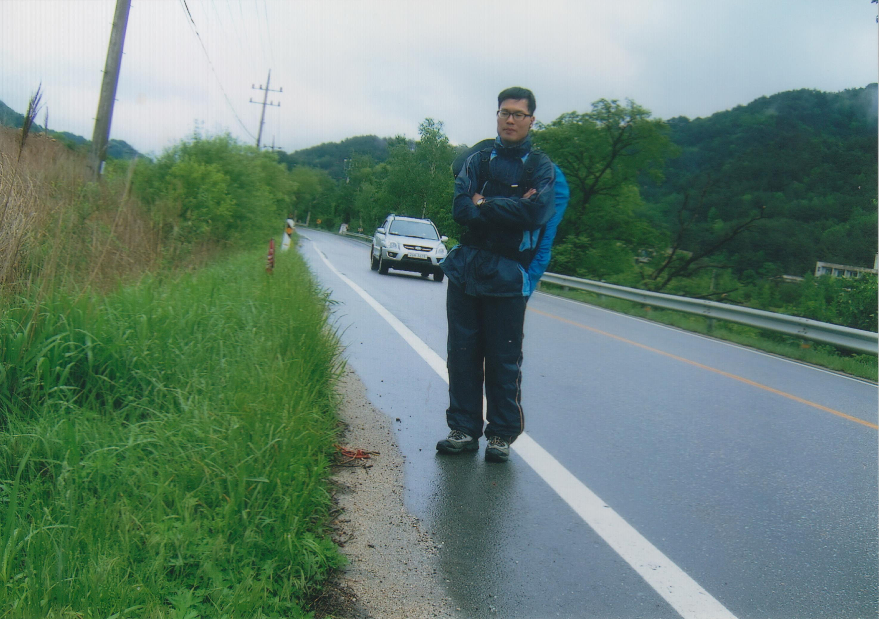 어제 여행을 멈춘 자리로 돌아가야 한다. 정확한 위치는 모른다. 어둡기도 했고 주위에 신경 쓸 여유도 없이 차가 오나 안 오나만 신경쓰며 걷다가 엉겁결에 차를 타고 왔기 때문이다. 단지 ‘간성 9Km’라는 팻말을 본 기억만 있다.