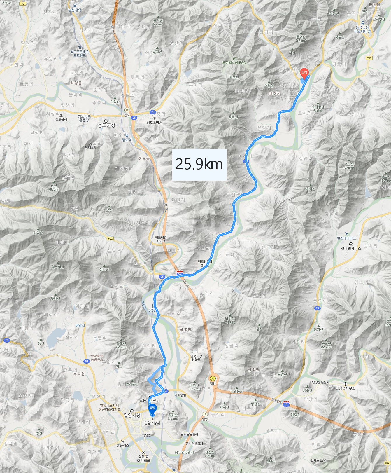 밀양에서 청도 매전까지 걷는 길은 영락없는 시골길이다. 부산에서 시작하여 김해를 거쳐 밀양까지 오는 길은 차들이 쌩쌩 달리는 길이었는데, 이런 길을 처음 걷게 되니 절로 휘파람이 날 정도로 행복했다. 거기에 아침까지 든든히 먹고 출발하니 세상도 아름다워 보이고, 여행할 맛도 나더라.