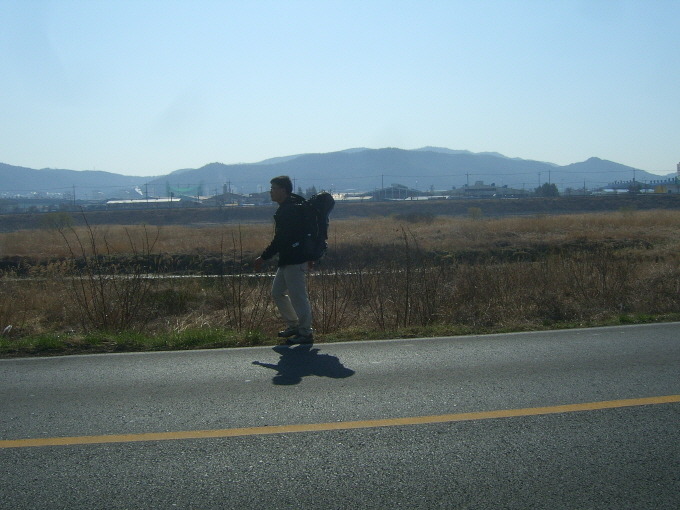 그런데 문제는 어떤 도로는 아예 피할 곳조차 없다는 것이었다. 도로 바로 옆에 벽이 가로막혀 피할 곳이 없거나, 농지가 길가 옆에 있어 고랑으로 내려가야 하는 식으로 인도가 없는 길은 처음이다. 이런 곳을 지날 때면 어쩔 수 없이 반대방향에서 차가 오는지, 안 오는지 확인해야 했다. 반대방향에서 차가 안 오면 앞에서 오는 차가 중앙선을 넘어 날 피해 가면 되기 때문이다. 그러나 양방향에서 동시에 차가 올 땐 도저히 방법이 없기에 걷는 걸 멈추고 최대한 벽에 몸을 밀착시켜야 했다. 벽과 하나가 된다는 생각으로 빈틈없이 붙어 있어야만 교통사고가 나지 않는다. 그럴 때 내 모습을 직접 볼 순 없지만 차 운전자 입장에선 얼마나 가관일까. 좀 살아보겠다고 아등바등 꼴이라니 말이다. 만에 하나 운전자가 실수라도 한다면, 생각만 해도 아찔하다.