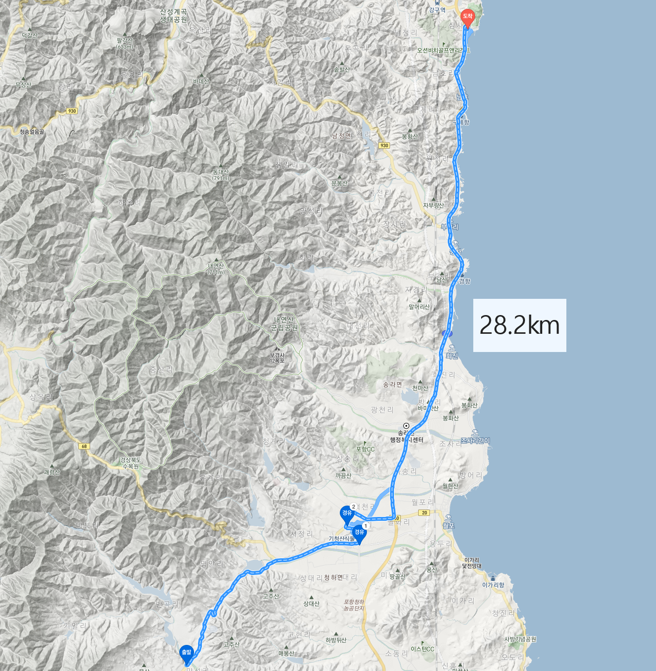 오늘은 드디어 7번 국도를 타게 되는 날이다. 7번 국도는 동해의 해안선을 따라 만들어졌기에 동해를 보며 걸을 수 있을 거라 잔뜩 기대했다. 경치도 당연히 좋을 뿐만 아니라, 시원한 바닷바람까지 불어와 걷기에 좋을 것이기 때문이다.