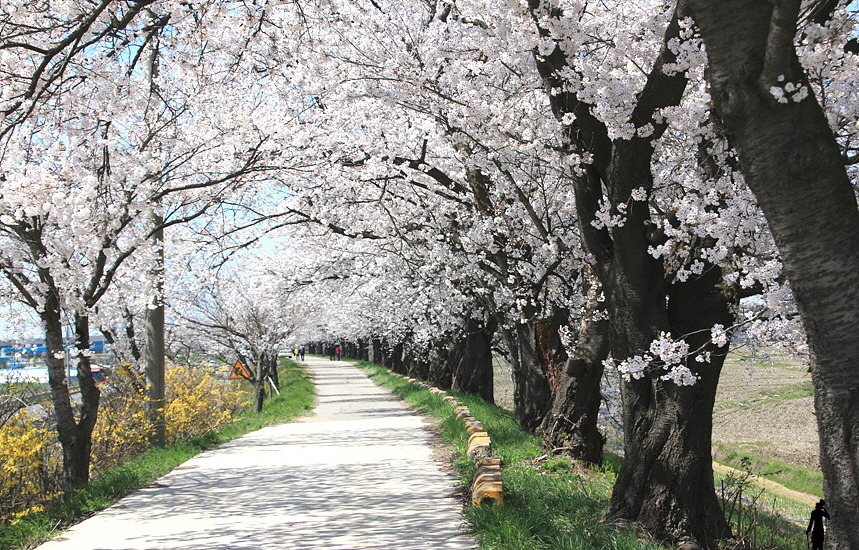 이 길은 역사적인 길이다. 일제시대 때 쌀 반출을 효율적으로 하기 위해 기획했던 도로이기 때문이다. 이 길에 대해 시대상을 알고 싶은 사람에겐 『아리랑』이 좋은 교과서가 될 것이다. 길가에 심어진 벚꽃도 그런 이유 때문에 예사롭게 느껴지지 않았다.