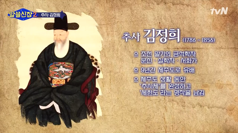 김정희(金正喜)는 조선조의 대표적인 훈척가문(勳戚家門)의 하나인 경주김문(慶州金門)에서 병조판서 노경(魯敬)의 장남으로 태어났으나 아들이 없던 백부 노영(魯永)의 양자로 자라났다. 왕가와의 친밀한 관계 때문에 가문의 위세가 대단했던 것은 사실이나 24세에 생원시에 일등입제(一等入第)한 뒤 동지(冬至) 겸(兼) 사은부사(謝恩副使) 김노경(金魯敬)의 연행(燕行)에 자제군관의 자격으로 수행, 연경(燕京)에서 당대 최고의 석학 완원(阮元)과 옹방강(翁方綱)을 만나 사제지의(師弟之義)를 맺은 일은 김정희(金正喜)의 일생에 일대전환을 예고하는 사건이었다.