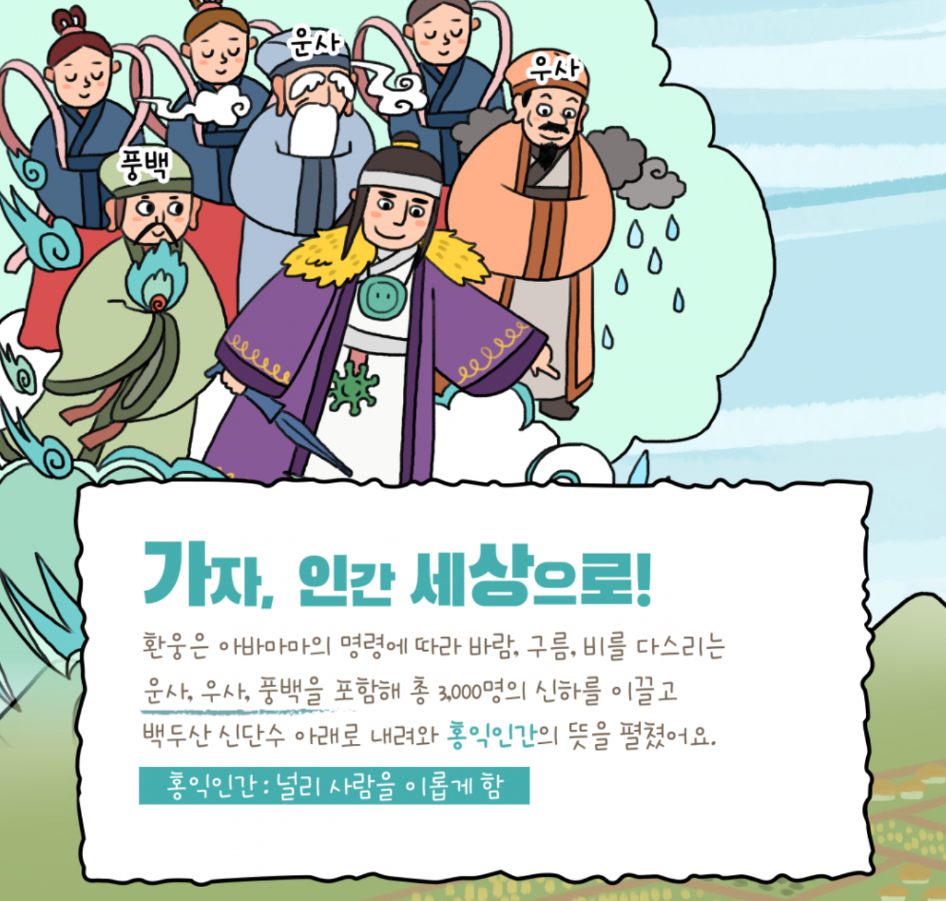 | 位臨東國土 時在帝堯天 | 지위로 동쪽 나라 임하셨으니 이때가 요임금 때였다네. |