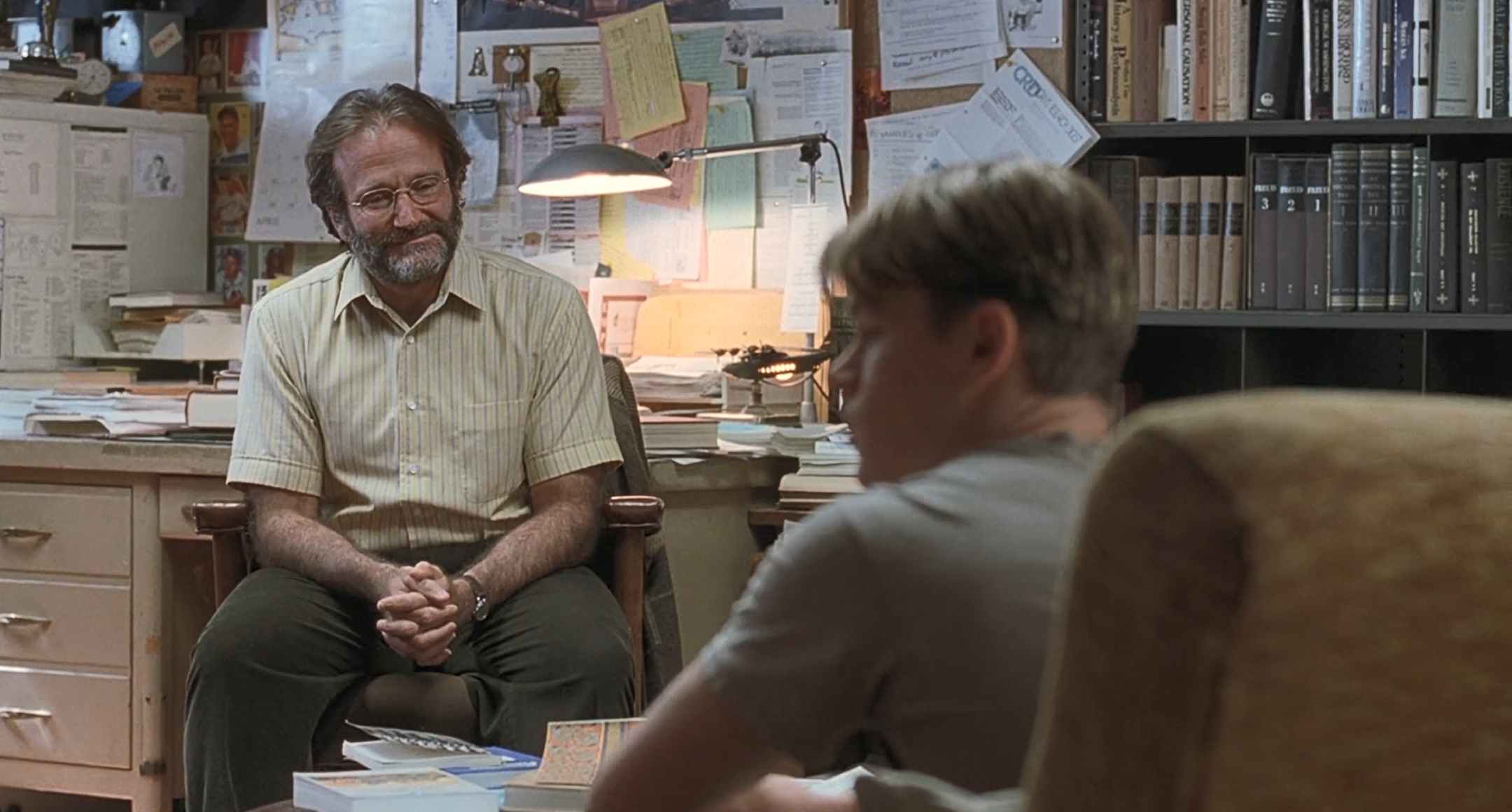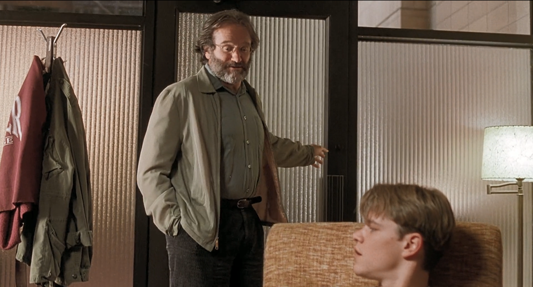 윌은 숨 돌릴 새 없이 이어지는 숀의 일갈에 허를 찔려 뜨끔하면서도, 놀이터에서 아이들이 모두들 엄마 손에 이끌려 떠난 후 황혼 속에 혼자 남은 아이처럼, 막막하고 슬픈 표정이다. 무엇에도 견줄 수 없는 ‘나만의 고통’에 빠진, 고독한 천재 소년. 윌은 자신의 고통을 말해도 어차피 사람들은 자신의 진짜 내면을 보게 되는 순간 얼굴을 돌려버릴 것을 알았다. 그 또한 오랜 차별과 핍박의 경험이 만들어낸 ‘세상에 대한 지식’이었다. 윌은 ‘천재’로 판단되어 호명되는 순간 천재라는 존재를 길들이는 사회의 호명체계 속에 갇히게 된다. 그의 캐릭터에서 ‘천재 이외의 것’을 보려 하는 사람, 그의 명석한 두뇌 회전의 광휘에 가려 미처 보이지 않는 거대한 상처의 풍경을 본 사람, 그가 바로 숀 맥과이어(로빈 윌리엄스)다.