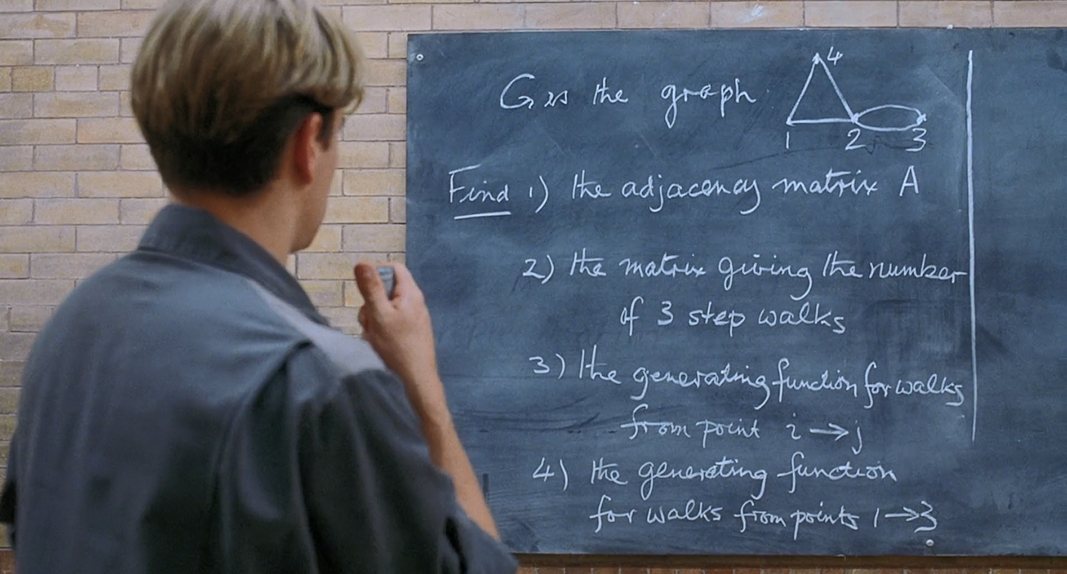 램보는 토요일 MIT 대학 동창회에서 친구들을 만나던 중 학생의 전갈을 받는다. 문제를 푼 사람이 나타났다고. 궁금해서 월요일까지 참을 수가 없다고. 램보는 교실 앞으로 가서 정답을 확인하지만, 문제를 푼 영광의 주인공은 색출하지 못한다. 월요일, 램보 교수의 강의실에는 때아닌 인파가 몰린다. 묘령의 수학 천재가 과연 누구인지 궁금해 모여든 것이다. 역시 그는 나타나지 않는다. 램보는 또 하나의 과제를 낸다. 자신과 동료들이 2년 넘게 걸려 간신히 푼 수학의 난제를. 그는 문제를 풀어놓고 나타나지 않는 학생의 행위를 교수에 대한 정면 도전으로 이해한다. “모두에게 공표하겠다. 학생의 도전에 우리 교수진은 열정적으로 화답할 것이다.”