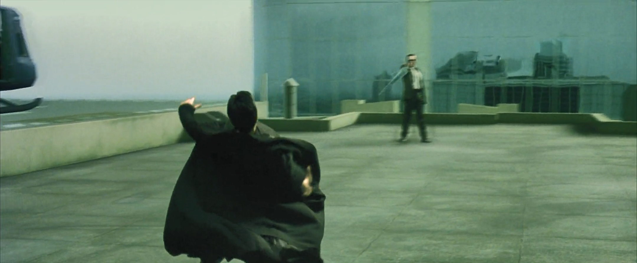 오라클의 예언―모피어스의 믿음―트리니티의 사랑이 합체하는 순간. 마침내 네오가 완전한 ‘그’로 거듭나는 순간. ‘그’는 매트릭스의 철칙(매트릭스에서 죽으면 현실에서도 죽는다)에 어긋나는 단 하나의 존재라는 예언이 증명되는 순간이다. 네오를 꼬박꼬박 ‘앤더슨’이라고 부르며 네오가 ‘그’임을 끈질기게 부정하던 스미스. 그는 이제야 네오가 ‘그’일 수밖에 없다는 것을 믿기 시작한다.
