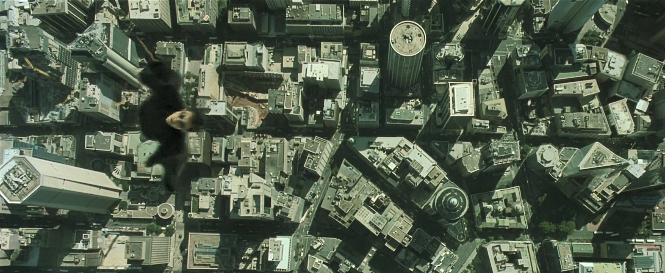 세상을 향해서는 주고, 자신의 내면 안에서 다시 태어나는 용기. 토마스 앤더슨은 바로 그 용기를 조금씩 키워가는 과정에서 네오가 되고, 파란 약이 아니라 빨간 약을 삼키고, 의심의 터널과 죽음의 터널을 거쳐 마침내 ‘그’가 되었다. 죽음에 대한 두려움을 극복하는 순간. 매트릭스가 길들인 육체의 감각에서 벗어나는 순간. 그는 이제 단지 날아오는 총알을 피하는 것이 아니라 ‘총알이 달리는 시간’과 ‘총알이 머무는 공간’을 사로잡아 스스로를 중력의 법칙에서 해방시켜버린다. 그가 ‘정지시킨’ 총알을 하나하나 떼어내어 땅에 떨어뜨리는 장면. 그것은 네오가 ‘그’가 되기 위해 마침내 공간과 시간(=인간의 한계)을 쥐락펴락하는 마술적 경지에 이르렀음을 보여준다. 스스로 자신의 책임을, 운명을, 신화를 완전히 긍정하는 희열의 순간에 도달한 것이다.