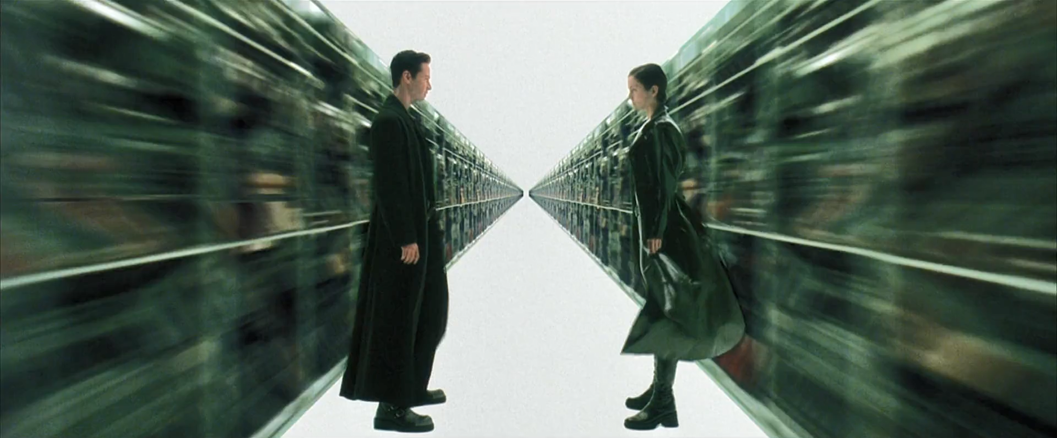 인간이 보고 느끼고 생각하는 모든 것들은 항상 매트릭스의 검색 엔진에 노출되고, 인간의 기억 또한 매트릭스에 의해 자유자재로 입력되고 삭제된다. 맛있는 스테이크를 먹으며 황홀해 하는 기분마저 모두 ‘스테이크맛’이라는 황홀한 환상을 섭취하는 것이었다. 모피어스 일행은 이러한 끔찍한 매트릭스의 음모에서 벗어나 자유를 찾기 위해 싸우는 전사들이었다. 스미스일당은 바로 그 매트릭스를 지키는 AI 통제 요원들이었고 모피어스 일행이 스미스일당의 삼엄한 검색망을 뚫고 매트릭스 안에 들어가 드디어 찾아낸 사람이 바로 ‘네오’였던 것이다.