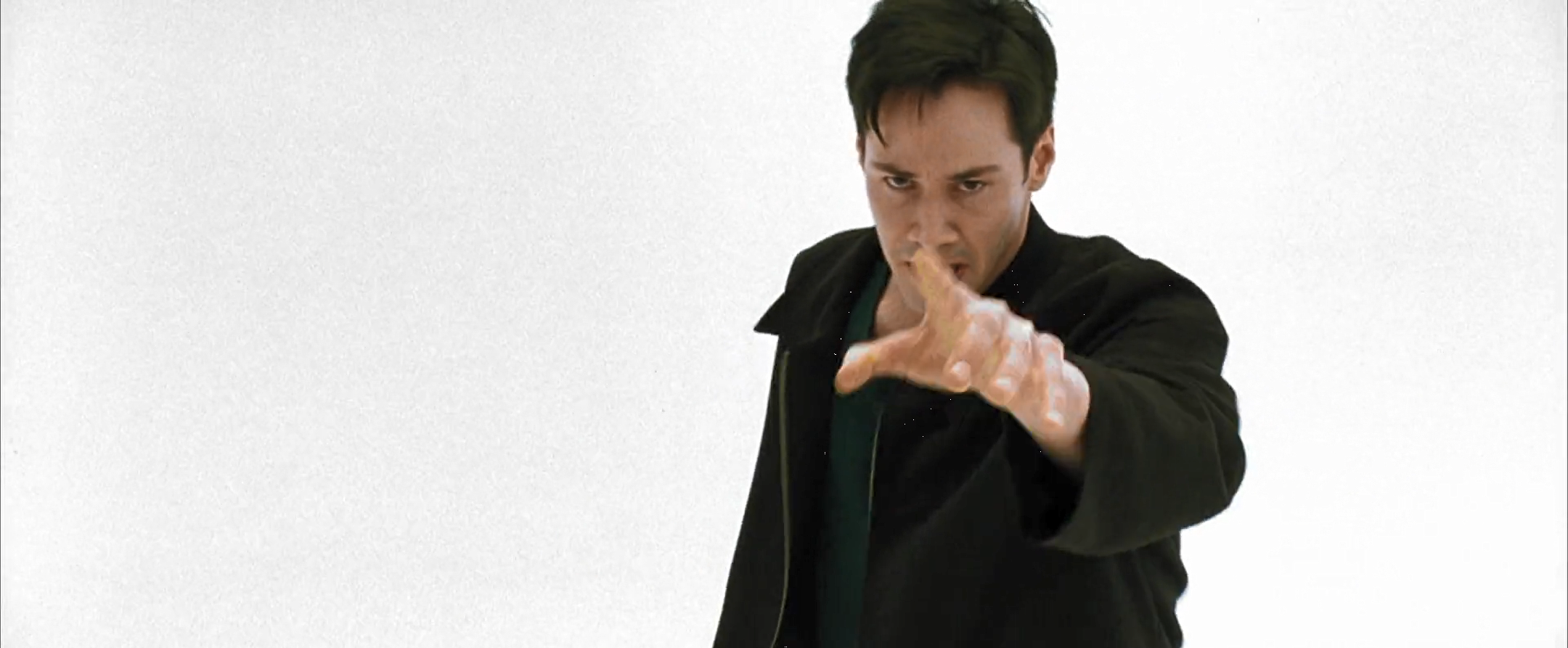 그 순간 네오는 아무도 예상치 못한 방식으로 스미스 ‘격파’한다. 순식간에 온몸을 스미스의 몸 안으로 침투시켜, 스스로를 잠시 스미스의 몸속으로 사라지게 한 후, 말 그대로 스미스를 ‘내파(內破)’해버리는 것이다. 이제 네오는 자신의 몸을 완전히 자유자재로 사용하는 천부적 매뉴얼을 스스로 완성시킨다. 어떤 인공무기의 성능도 압도하는 최고의 무기는 바로 인간의 몸 그 자체임을, 네오는 그렇게 증명한다. 그리고 네오는 이렇게 자신감 넘치는 피날레 멘트를 날린다.