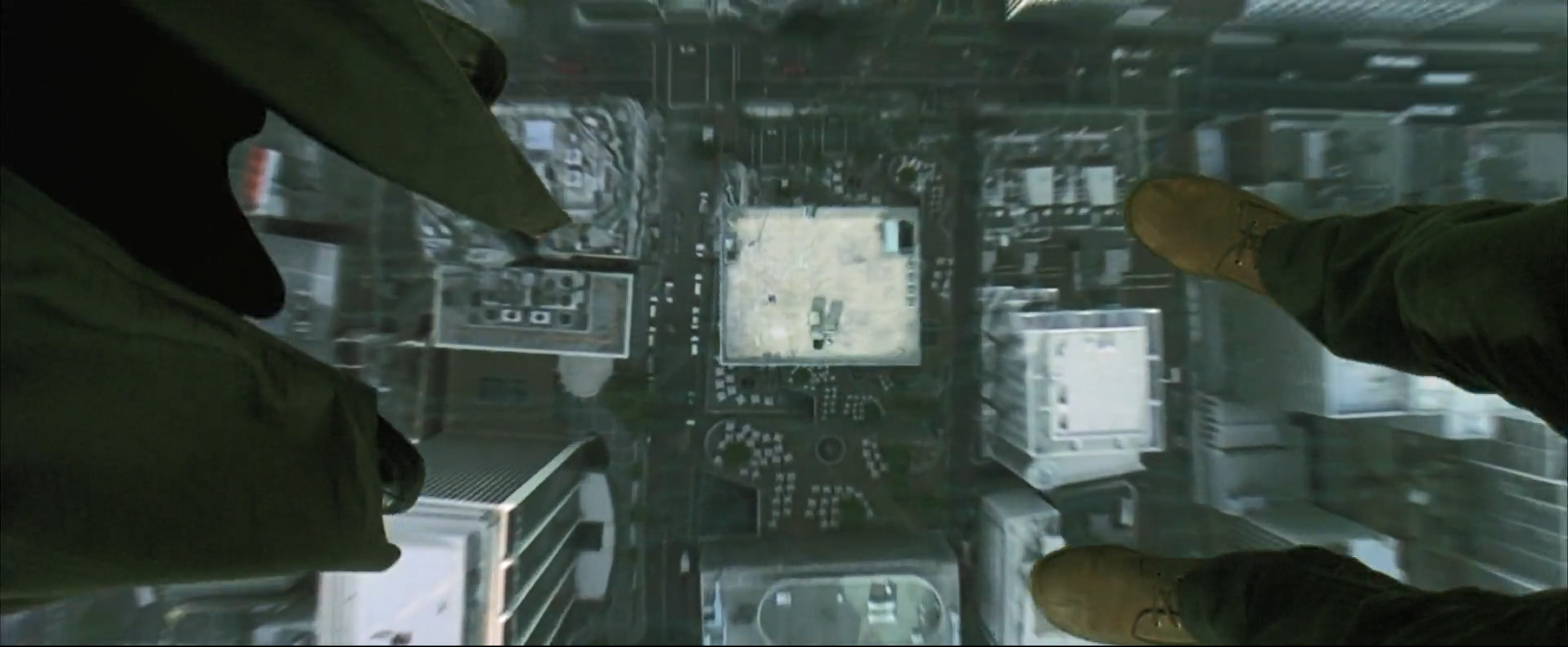 그런데 컴퓨터를 통해 세계의 비밀과 무한 접속할 수 있는 토마스의 ‘능력’만으로는 ‘성’과 ‘속’ 사이에 놓인 문턱을 뛰어넘을 수 없다. 세속의 인간 토마스 앤더슨이 신성의 이름 ‘네오’를 향한 문턱을 넘기 위해서는 세속의 집착을, 신성에 대한 두려움을 떨쳐내야 한다. 그는 매력적인 여성의 몸에 새겨진 문신으로 형상화된 ‘하얀 토끼’의 유혹은 쉽게 따르지만 전화기 저편으로 들려오는 모피어스의 목소리를 따라 목숨을 걸고 고층건물의 옥상 문턱을 넘어서지는 못한다. 휴대폰 너머로 모피어스는 다급하게 외친다. “비계를 타고 옥상으로 가!” 아직 ‘네오’가 되지 못한 ‘토마스’는 영문을 알 수 없는 이 미궁의 추격전을 마음으로 받아들이지 못한다. “말도 안 돼! 이건 미친 짓이야!” 모피어스는 다그친다. “방법은 두 가지다! 비계를 이용해서 옥상으로 올라가든가, 아니면 놈들한테 잡히든가. 선택은 네 마음이야.”