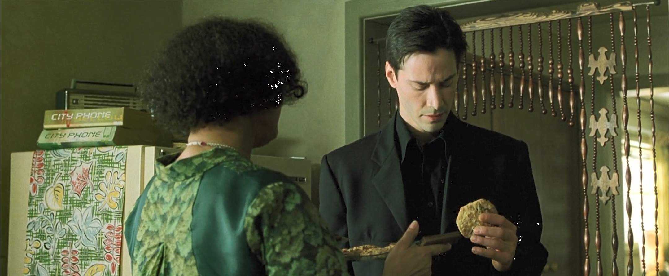 네오는 구역질을 참지 못하며 실신해버린다. 그는 이곳(진짜 세계)에서 나가는 것이 곧 매트릭스 안에 갇히는 것이라는 참혹한 역설에 직면한다. 차라리 아무 것도 모르는 것이 낫지 않았을까, 환상 속에서 살아가는 것이 훨씬 속 편하지 않았을까. 네오는 ‘빨간 알약’을 선택한 대가를 톡톡히 치르고 있는 셈이다. 세속의 세계는 안전하지만 무의미한 반복으로 점철되어 있고 신성의 세계는 의미로 가득 차 있지만 목숨을 거는 위험을 감수해야 한다. 자신이 살아온 세계가 모조리 허무한 환상일 뿐이라도 차라리 그 편안한 무지의 세계로 돌아가고 싶어져버린 네오. “다시 돌아갈 순 없죠?” 모피어스는 미소 짓는다. “그래. 돌아갈 수 있다면 가겠나? 사과를 해야겠군. 규칙이 있지 일정한 나이가 될 때까진 이 얘길 안 해. 위험하니까. 받아들이질 못하거든. 그런 경우를 봤어, 미안해. 하지만 난 할 일을 한 거야.”