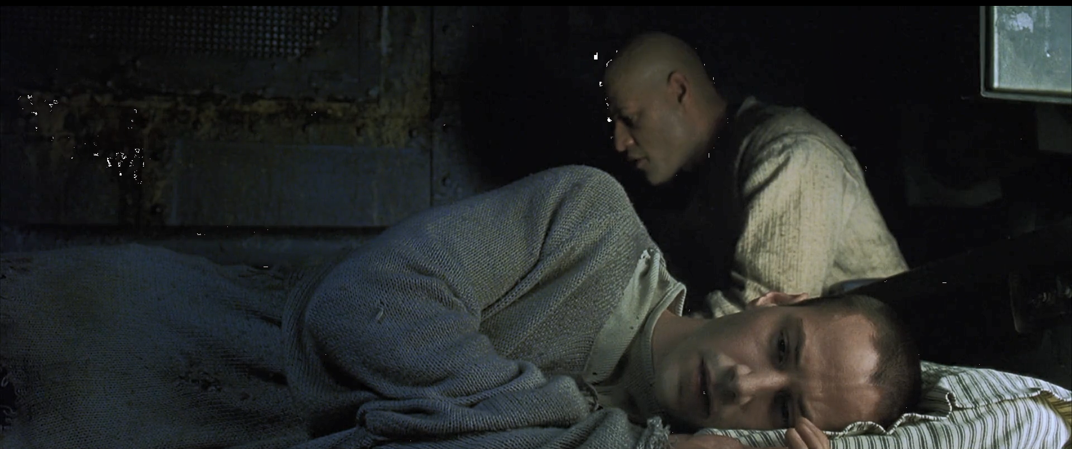 모피어스: (고문에 지쳐 아무 말도 하지 못하고 점점 정신을 잃어간다.)