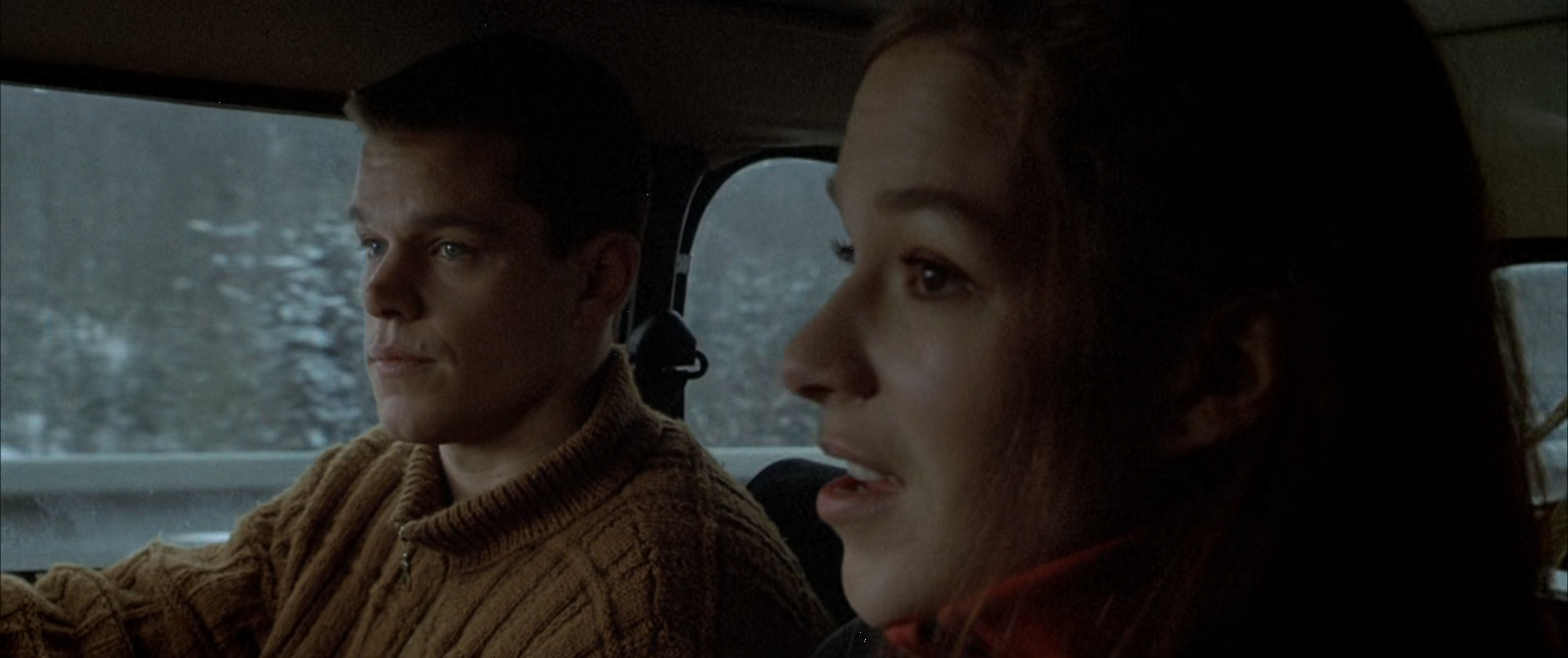 그러나 마리의 본능은 역설적으로 지금 자신이 믿을 수 있는 것은 이 남자뿐임을 직감한다. 아무런 가시적 증거가 없음에도 불구하고, 내가 누구인지 모르겠다며 좌충우돌하는 이 남자의 진심만은, 믿고 싶다. 운전대를 잡은 제이슨은 코앞에서 서성이는 경찰들을 보며 마지막으로 질문한다. “마리, 당신이 이 차에서 내릴 수 있는 마지막 기회예요.” 마리는 더 이상 망설이지 않고 안전벨트를 맨다. 나는 당신과 함께 가겠다는 의지를 분명히 한 마리.
