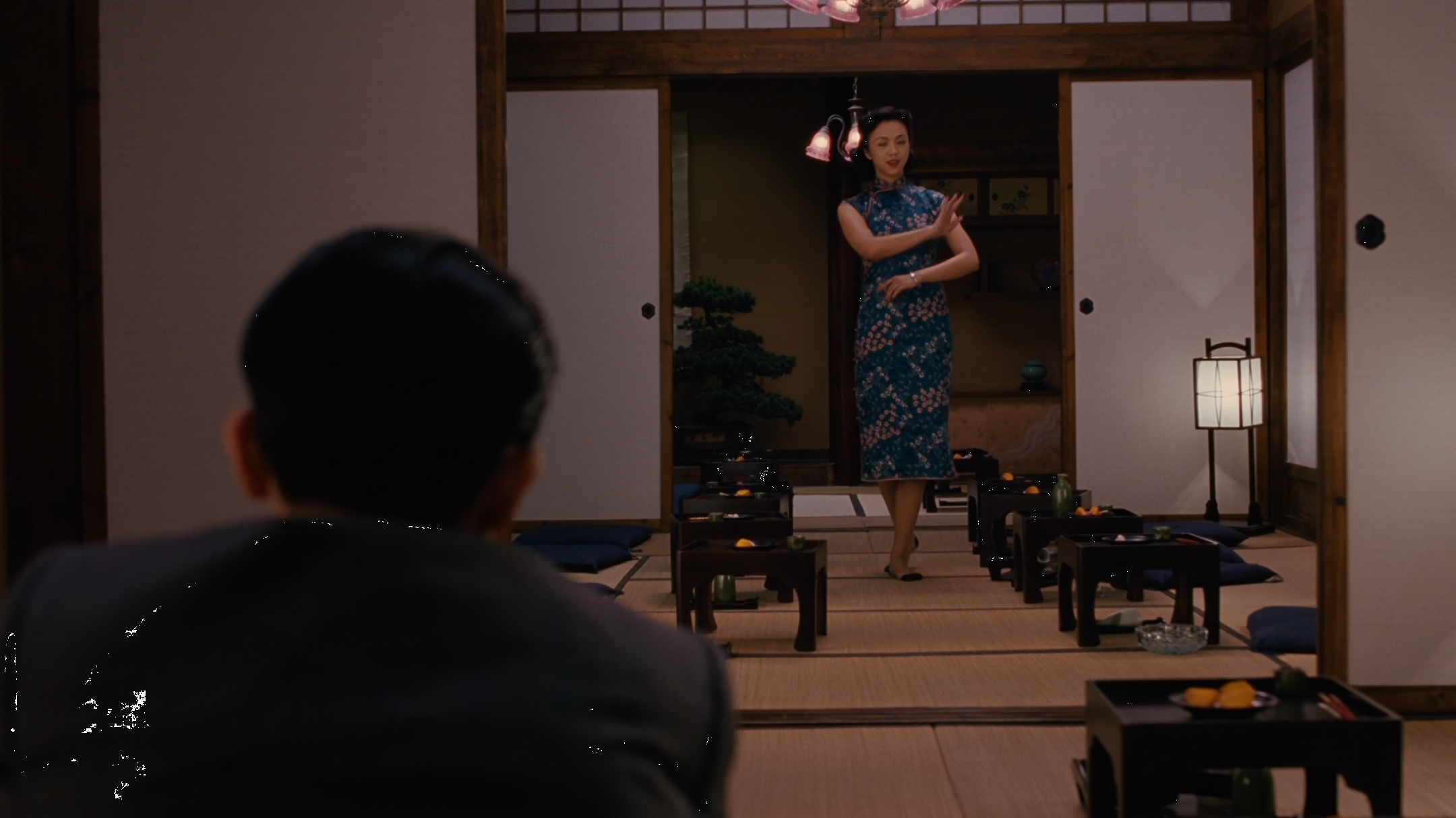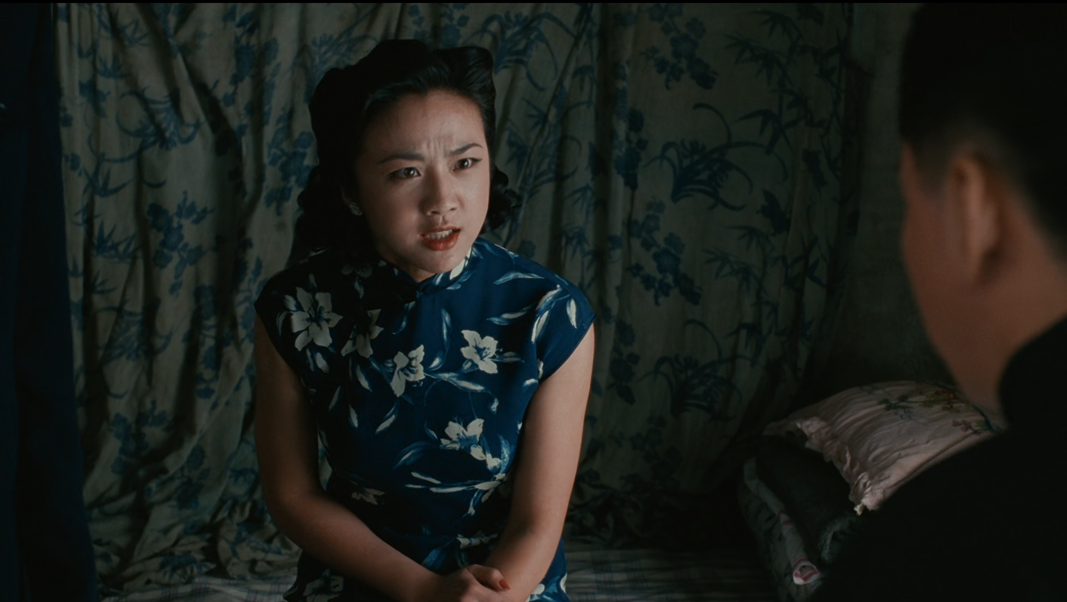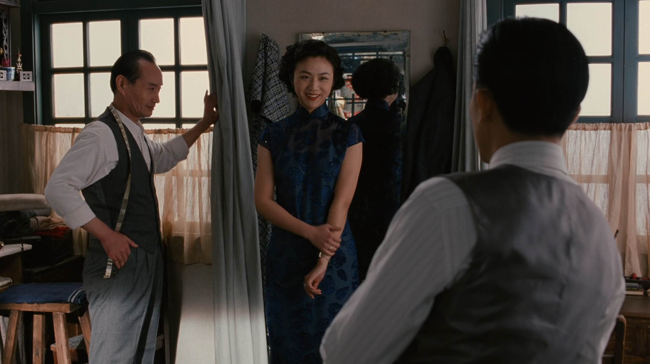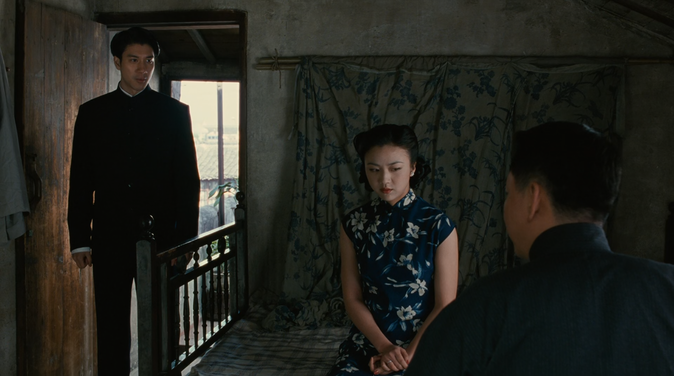 이 선생의 의심 많은 성격 때문에 두 사람의 밀회는 더없이 스릴 넘치는 두뇌 게임처럼 급박하게 진행된다. 막 부인이 이 선생을 옷가게로 유인하여 두 사람이 첫 번째 밀회를 갖게 되는 날. 그녀가 자신의 사이즈에 맞게 고친 옷을 갈아입고 커튼을 살짝 밀며 이 선생 앞에 나타나는 순간. 관객들은 짧고 덧없는 한숨을 쉰다. “고치니까 너무 붙네요. 숨이 막힐 지경이예요.” 그녀가 딱 달라붙는 옷에 숨 막혀 하는 동안, 관객들은 그녀의 아름다움에 숨이 막힌다. 장 지아즈가 아닌 막부인의 매력에 사로잡힌 관객의 시선은 정확히 이 선생의 것이기도 하다. 그녀를 바라보는 그의 시선은 마치 금방이라도 어둡고 깊은 밀실로 그녀를 유인할 듯이 탐욕스럽고 색정적이다. 그녀가 옷을 갈아입으려 하자, 그는 명령하듯 쏘아붙인다. “그냥 입고 가시오!” 막 부인과 함께 마작을 하며 친분을 쌓던 상류층 부인들의 시선에서 벗어나자마자, 이 선생의 노골적이고 격정적인 눈빛이 그녀의 몸 위로 쏟아지기 시작한다.