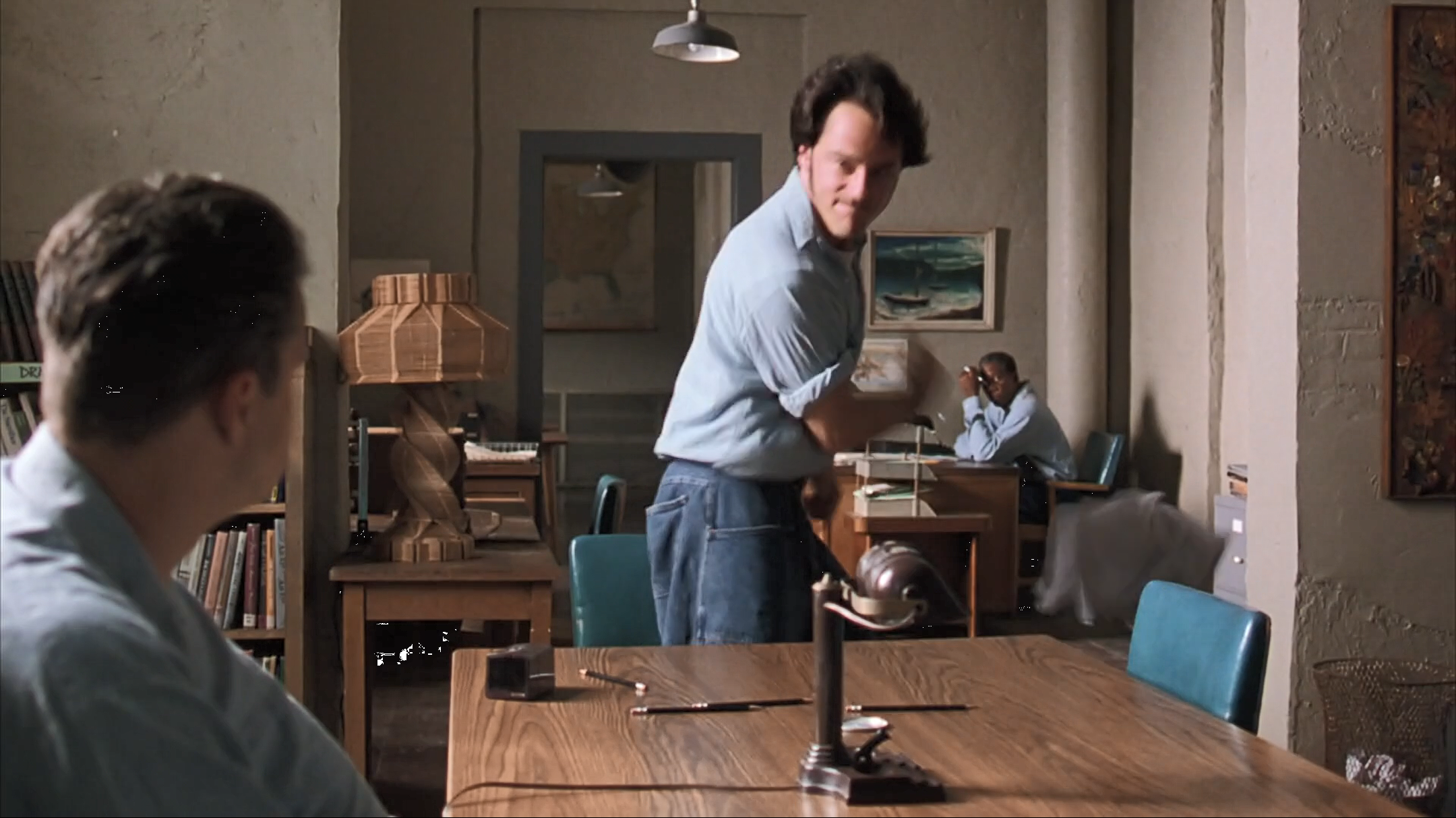 그렇게 그는 감옥에서조차 자신의 모든 가능성을 시험한다. 그는 감옥을 마치 감각의 한계를 확장하는 실험실처럼 사용한다. 그는 늘 새로운 ‘일거리’를 찾아내며, 안정감을 줄 수 있는 고착된 대상에게 매달리지 않는다. 그는 레드를 ‘친구’로서 아끼지만 레드에게 끈끈한 연민을 느끼지 않으며, 동료를 존중하지만, 그들에게 정서적으로 의존하지 않는다. 그는 감옥이라는 밀폐된 세계 안에서 자신만의 또 다른 세계를 창조해내고 있다. 그로 인해 쇼생크 감옥은 점점 ‘최초의 사건들’로 가득해진다. 그가 사는 곳은 어느새 ‘단지 감옥’이 아니게 된다. 그는 어떻게 하면 감옥 안의 욕망의 배치를 바꿀 수 있을까를 끊임없이 연구하고 고민하고 실천한다. 그리고 무슨 속셈인지 그는 지질학까지 연구한다. 주어진 감각의 경계에 만족하지 않고 끊임없이 새로운 자극과 취미를 찾아다니는 앤디의 열정. 그것은 그의 경이로운 미래를 예언하는 정교한 복선이다.
