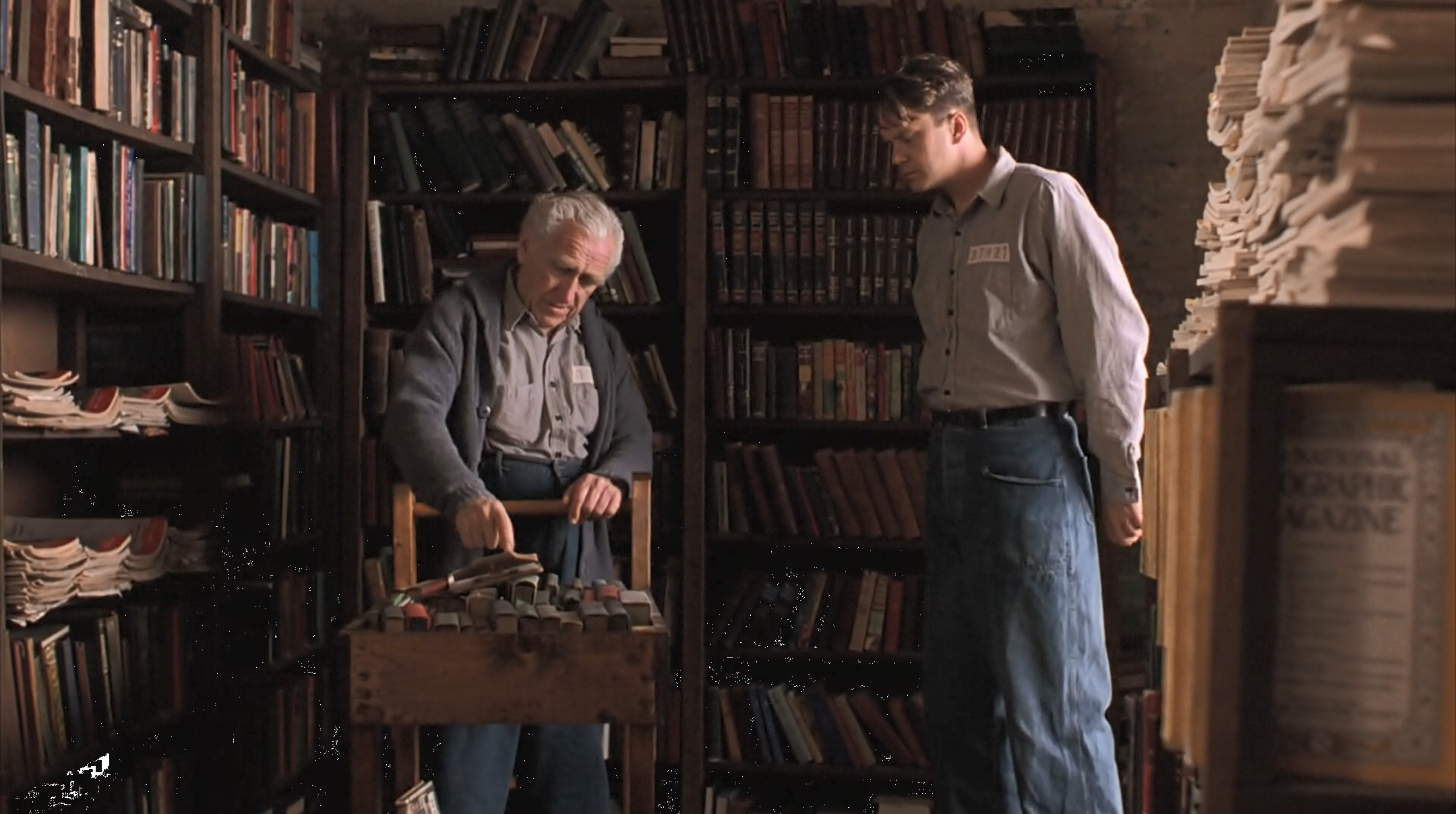 자신의 재산을 부풀리는 데 앤디를 이용하기로 결심한 노튼 소장은 앤디를 쇼생크 감옥 도서관의 조수로 배치한다. 앤디의 잡무를 덜어주고 좀더 ‘손쉽게’ 앤디를 곁에 두고자 하는 속셈이었다. 도무지 ‘할 일’이라고는 없어 보이는 쇼생크 감옥 도서관의 일인 사서이자 관장은 30여 년 동안 ‘죄수들의 독서’를 담당했던 터줏대감 브룩스였다. 브룩스는 30여 년 동안 혼자서 해도 충분했던 이 일에 ‘조수’를 붙여준 노튼 소장의 깊은 뜻을 헤아리지 못한다.
