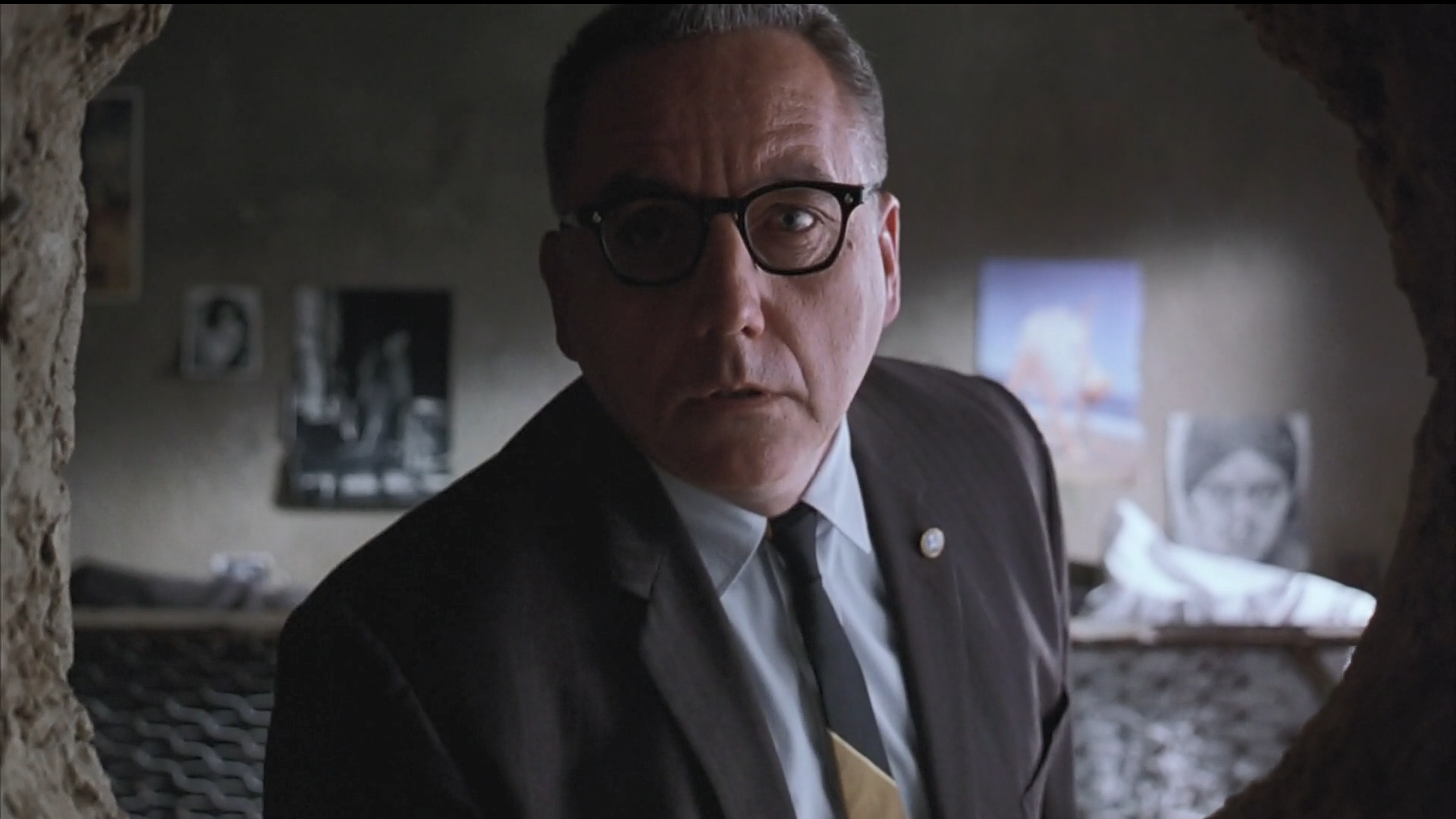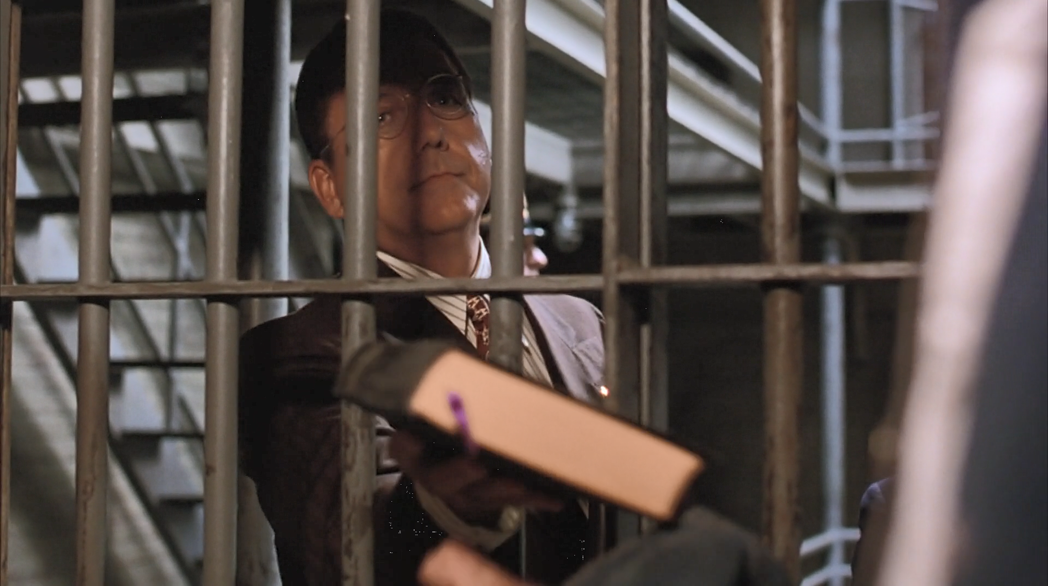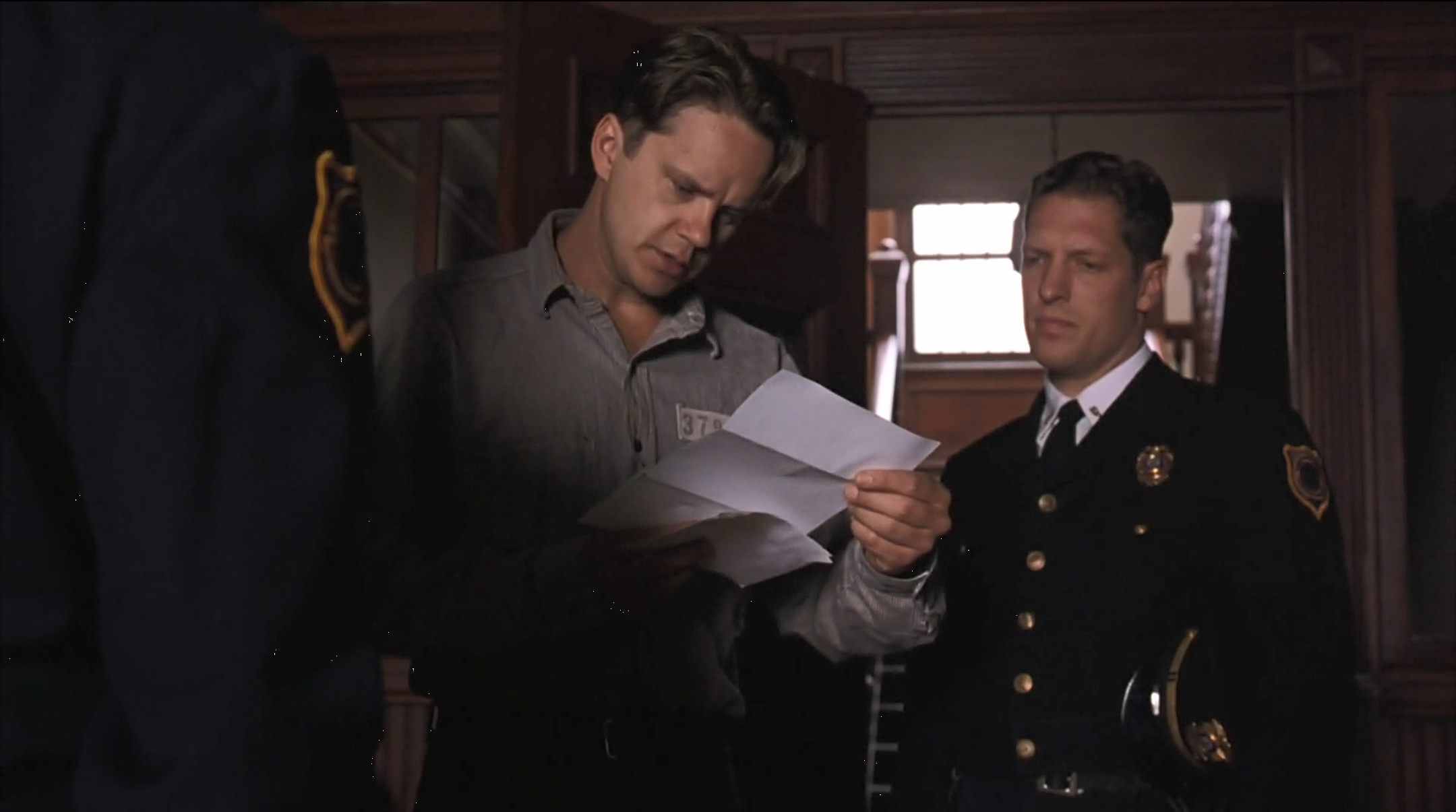 그는 마치 이 세상의 빛이 자기 자신인 양 거들먹거린다. 자신을 잘만 따르면 마치 저 세상의 천국으로 입장하는 암표를 발급받을 수 있다는 듯. 현실의 삶으로 빛을 만들지 못하는 노튼은 성경의 빛에 의탁하여 도무지 빛나지 않는 자신의 삶을 빛내보려 한다. 사실 노튼의 속셈은 불시 검열을 핑계로 앤디의 의중을 떠보려는 것이었다. 신출귀몰한 세무 능력을 지닌, 과거의 은행 부지점장 앤디의 ‘이용가치’를 고민하는 노튼 소장. 그는 앤디의 방에 있던 성경을 무심코 가져가려 하다가 앤디에게 돌려준다. “이걸 뺏어서는 안 되지. 이 안에 구원이 있으니까.” 카메라는 앤디의 손때가 묻은 오래된 성경을 의미심장하게 비춰주고, 앤디의 눈빛은 이날따라 달빛을 비춘 칼날처럼 시리게 빛난다. 성경 안에 있는 구원, 그것은 노튼 소장에게는 ‘말씀의 빛’이었겠지만, 앤디에게는 ‘말씀 이상의 무엇’이었고, 이 비밀은 영화의 후반부에 밝혀진다.