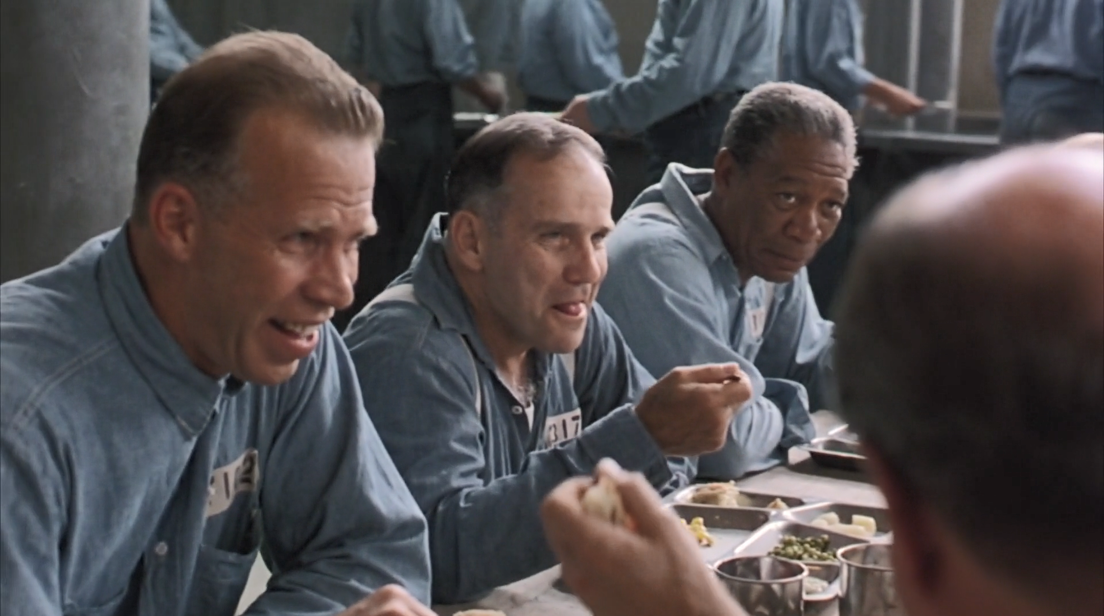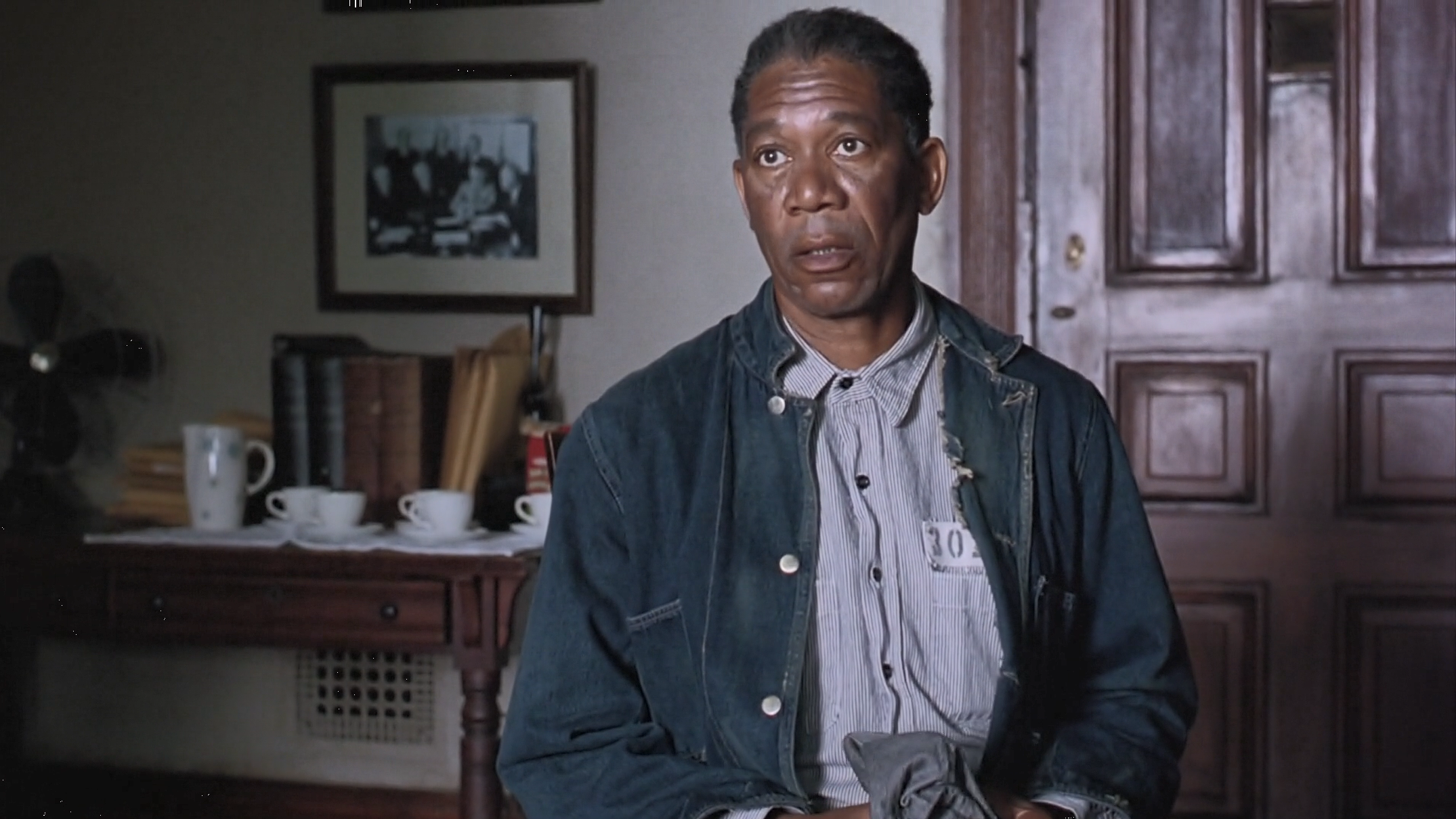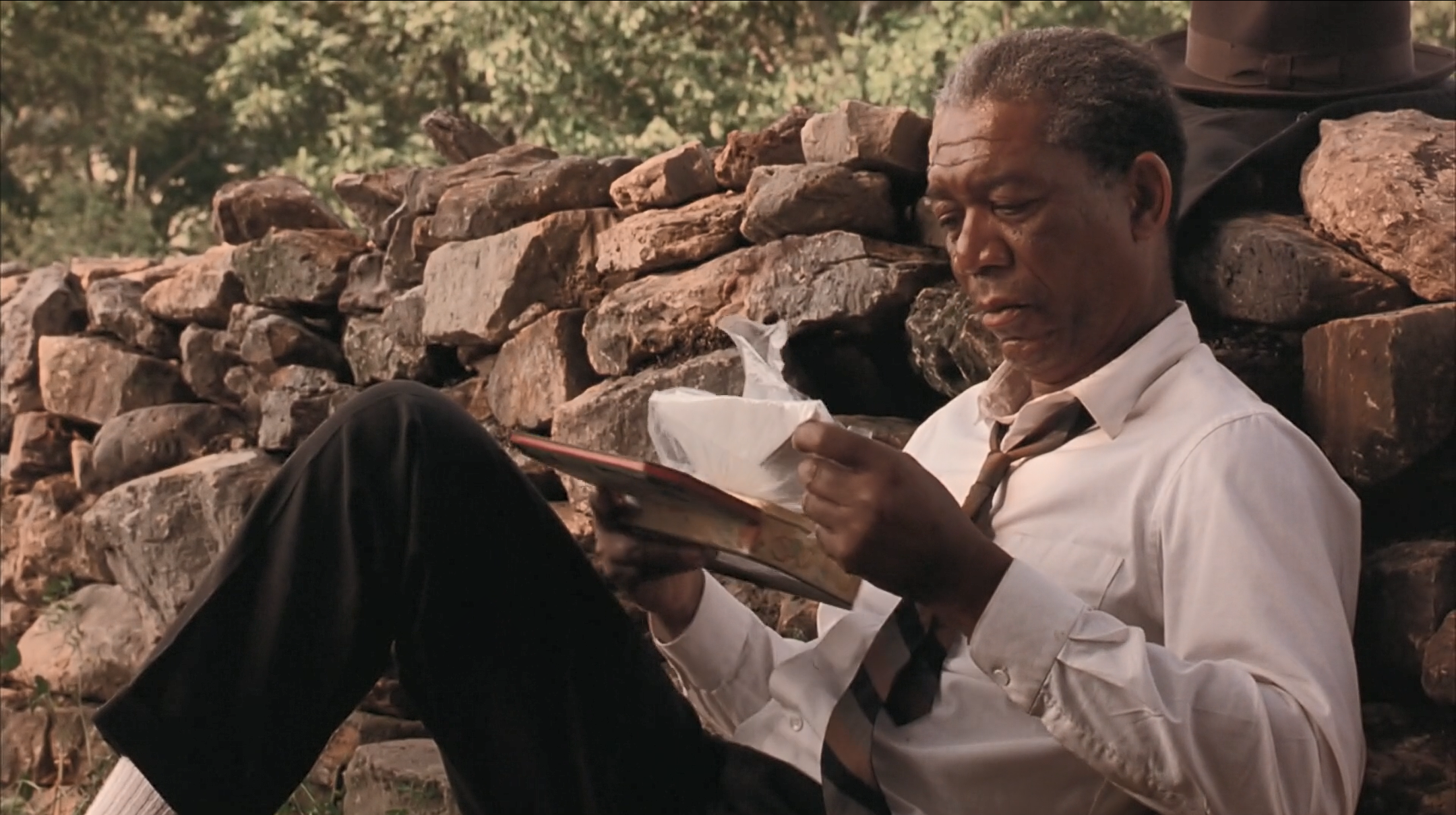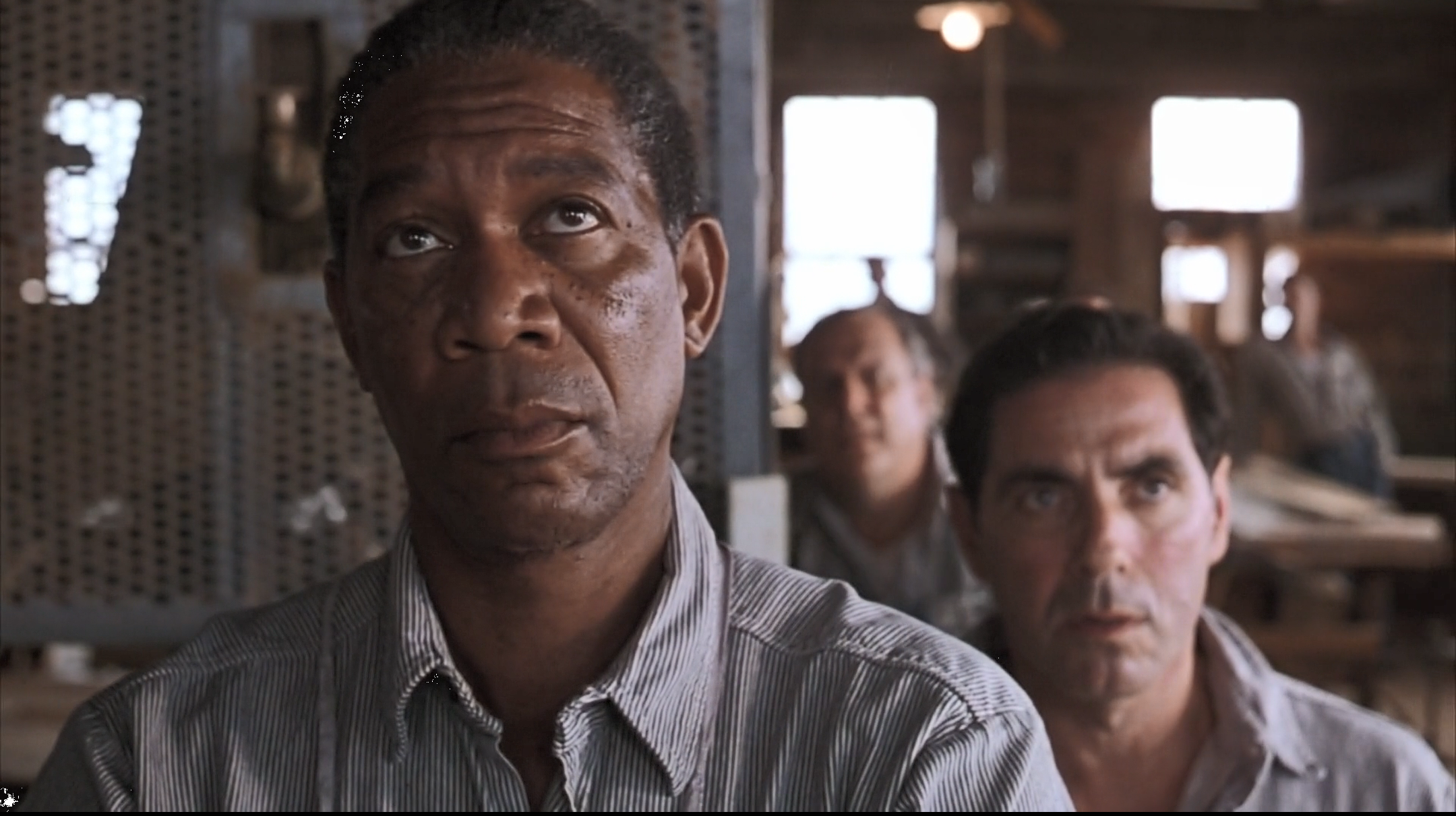 레드는 이 영화의 내레이터이자 쇼생크 감옥의 터줏대감으로서 신출귀몰한 물자공급원의 역할을 맡고 있다. “담배, 마리화나, 애들 졸업 축하주도 구할 수 있죠. 뭐든지 구할 수 있습니다. 그래요. 인간 백화점이죠. 듀프레인이 와서 영화배우 사진을 구할 수 있냐고 물었을 때도 문제없다고 했지요. 듀프레인은 아내와 정부를 죽인 죄로 1947년 쇼생크 감옥으로 왔습니다. 전직 은행 부지점장이었죠.” 듀프레인이 쇼생크에 입성하던 날, 죄수들은 새내기 죄수들을 향해 내기를 한다. ‘신참 죄수들 중에서 누가 먼저 울음을 터뜨릴까’에 내기를 거는 것이다. 감옥에서는 현금보다도 소중한 담배를 저마다 내기의 판돈으로 걸며 키득거리는 고참 죄수들. “처음에 듀프레인은 제게 강한 인상을 주지 못했습니다. 바람만 불어도 날아갈 것 같았죠. 그게 제 첫인상이었습니다.” 레드는 아무도 담배를 걸지 않은 ‘꺽다리 귀공자’ 앤디 듀프레인에게 담배를 무려 10개비나 건다.