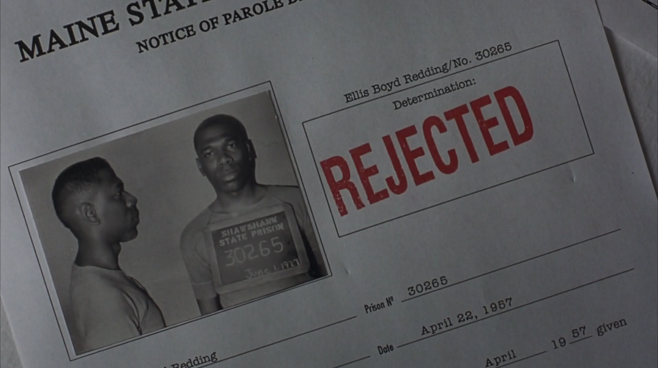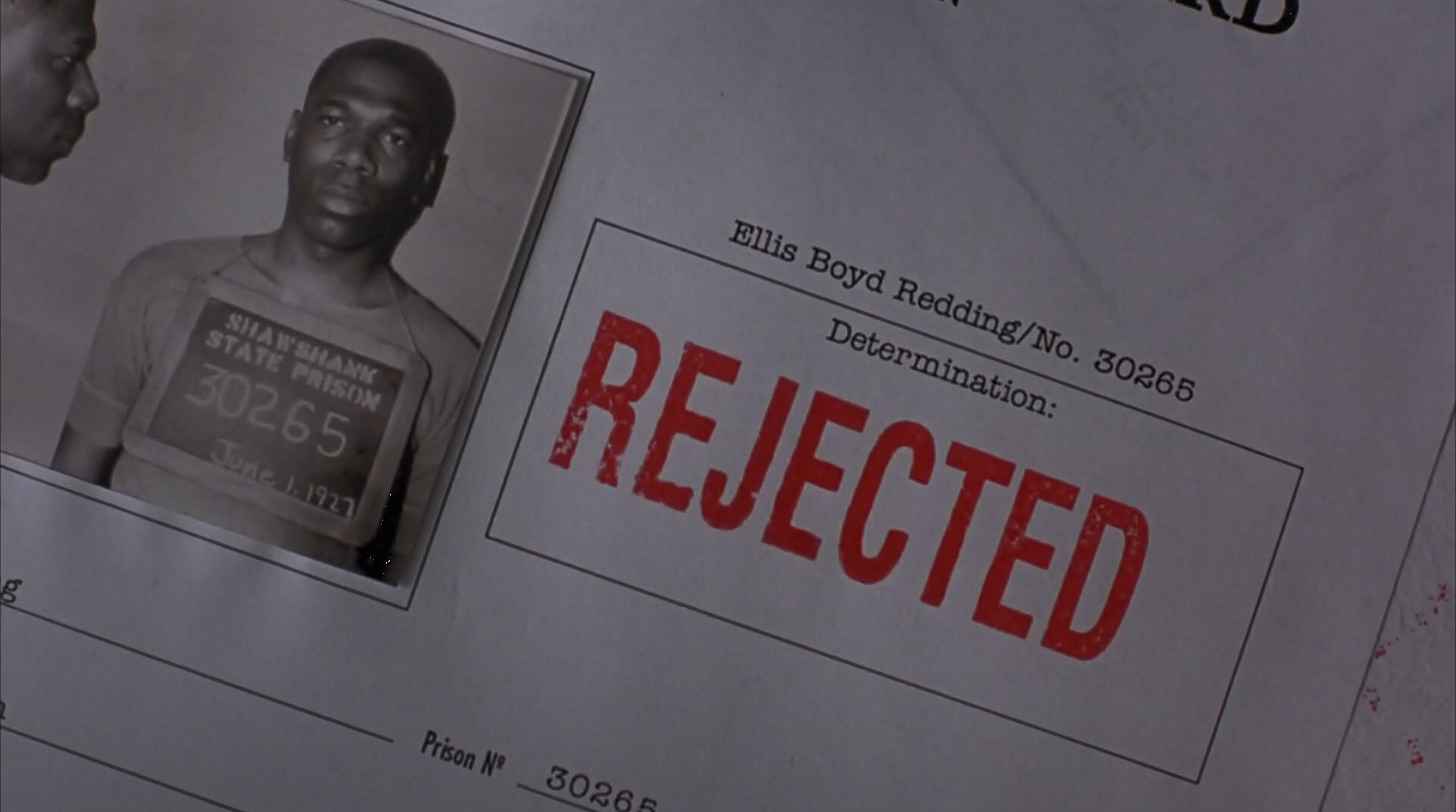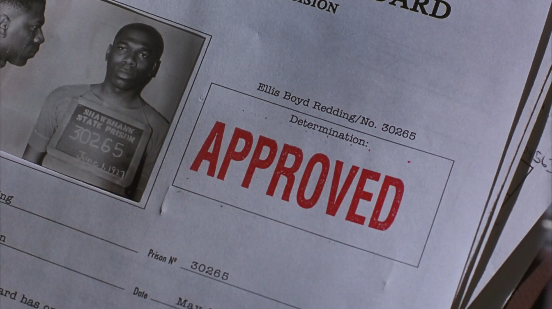 앤디 듀프레인이 무기징역을 선고받는 동안 레드(모건 프리먼)는 가석방 심사를 받고 있었다. 가석방 심사위원은 레드에게 질문한다. “20년을 복역했지요? 사회에 복귀할 준비가 됐다고 생각합니까?” 레드는 사뭇 긴장된 표정으로 자신이 교화됐음을 주장한다. “네. 저는 준비됐습니다. 감옥에서 많은 것을 배웠습니다. (……) 전 변했습니다. 더 이상 위험한 존재가 아닙니다. 맹세할 수 있습니다.” 레드의 표정은 절박하기 이를 데 없지만 심사위원은 레드의 서류에 ‘부적격(rejected)’ 판정 도장을 찍는다. 그는 젊은 시절 범죄를 저지르고 무기징역을 선고받은 후 20년 동안이나 별 탈 없이 복역했지만 사회는 그를 받아들이길 거부한다. 레드를 비롯한 쇼생크의 죄수들은 자신의 삶이 ‘적절하다/부적절하다’는 판정을 가석방 심사위원으로부터 인증 받아야 할 처지다. 그들은 수많은 변수들을 고려하여 이 죄수가 감옥 밖으로 나가서 ‘위험하지 않은 인물’로 살 수 있는지를 ‘계산’한다. ‘교화된다는 것’은 바로 ‘예측 가능한 인간’이 되는 것이며 ‘계산 불가능한 의외성’을 최대한 제거하는 행위다.