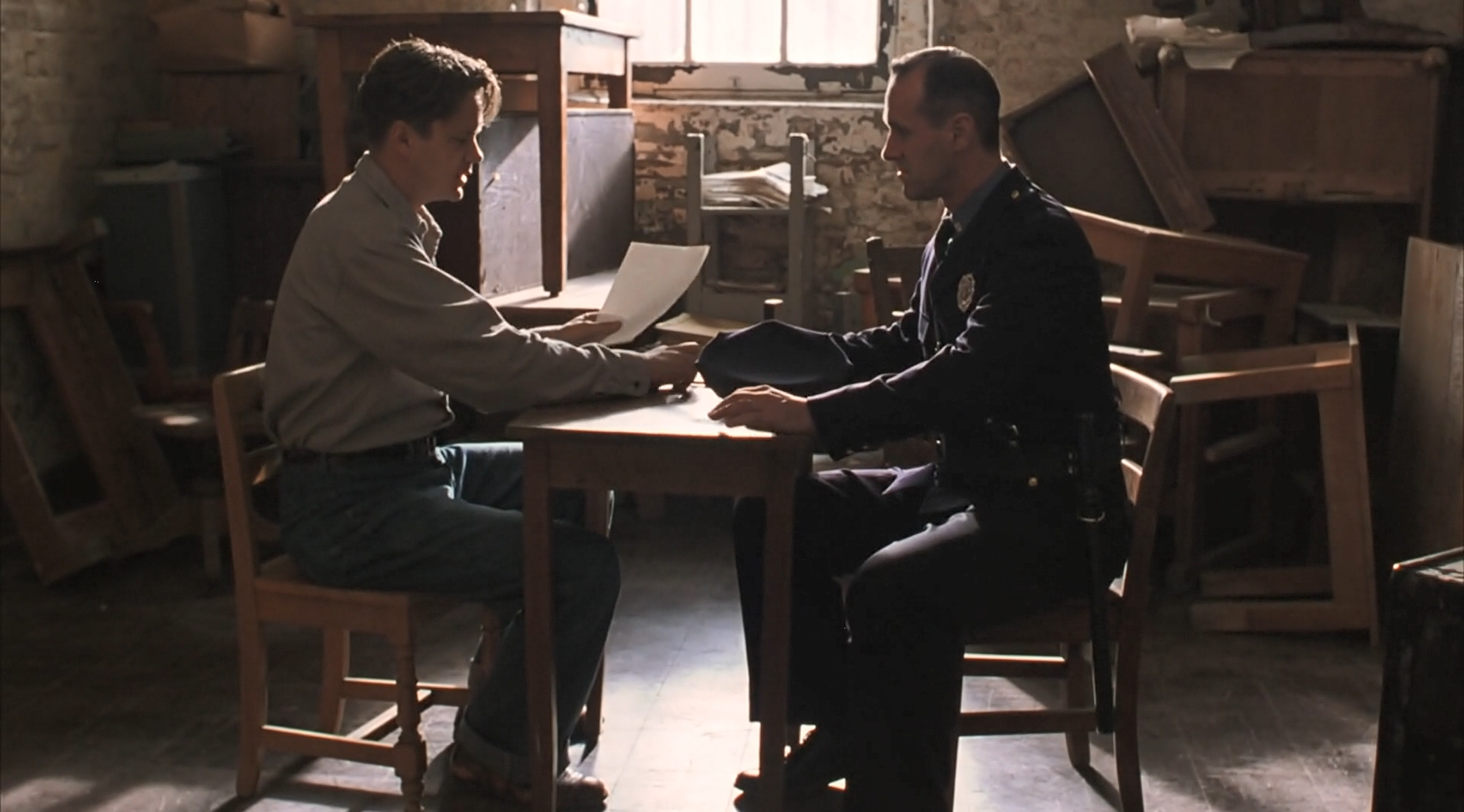 레드(모건 프리먼)를 매혹시킨 앤디(팀 로빈스)의 매력도 바로 그 ‘홀로 있음’이었다. 앤디는 좀처럼 타인에게 먼저 말을 걸지 않고, 말을 해도 두 단어 이상 입을 떼지 않음으로써 어떤 ‘무리’에도 속하지 않았다. “앤디 듀프레인은 죄수들과 친하지는 않았습니다. 감옥 생활에 적응하려다 보니 그런 거라 생각했죠. 한 달이 지나자 앤디는 두 단어 이상 말하기 시작했습니다. 그가 말을 건 첫 번째 상대는 바로 저였습니다.” 앤디가 자신을 소개하며 다가오자 레드는 단도직입적으로 묻는다. “아내를 살해한 은행가시군. 왜 죽였소?” 앤디는 당황하지 않고 차분하게 대답한다. “난 안 죽였어요.”