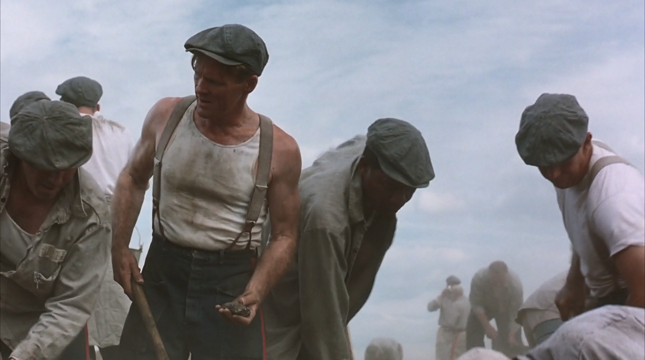 도무지 길들이기 힘든 개인의 야성을 빼앗는 가장 효과적인 비결은 ‘노동’을 통해 개개인의 신체를 무력화시키는 것이다. ‘노동이 최고의 경찰’이라는 니체의 날카로운 성찰은, 감옥에서야말로 훌륭하게 적용된다. 감옥에서는 노동이 최고의 간수다. 숲 속을 마음껏 질주하던 야수들을 규칙적인 생활과 소모적인 노동이라는 철책에 가둠으로써, 야수들은 가축으로 훈육된다. 쇼생크의 죄수들도 이러한 ‘노동의 철책’에 감금된다. 이번에는 야외 노동이다.
