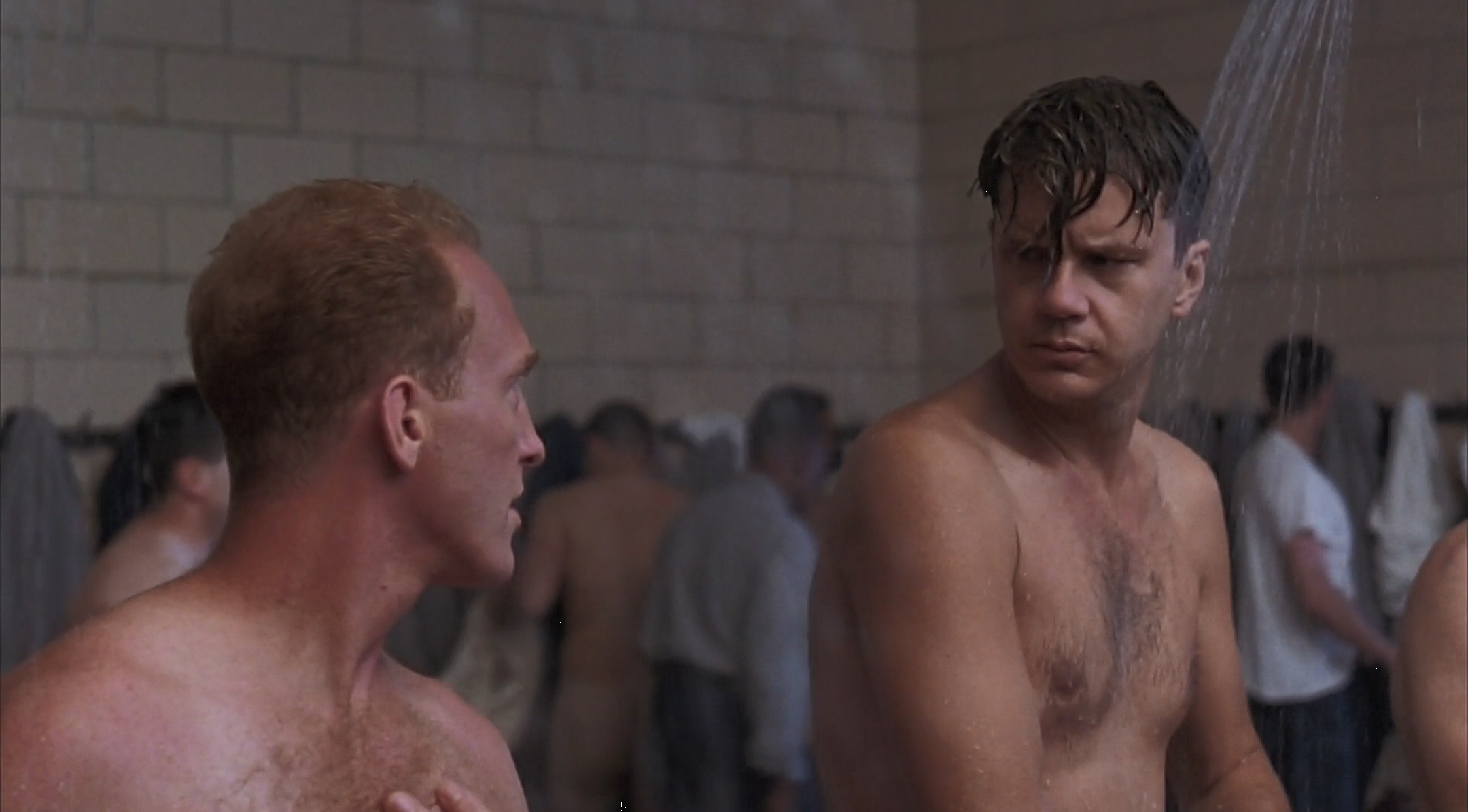 보그스는 샤워장에서 앤디의 몸을 샅샅이 훑어보며 추파를 던진다. “이봐, 너 아직 싱싱하지? 아직 아무도 안 건드렸지? 우린 모두 친구가 필요해. 네 친구가 돼줄게. 짜식, 좋으면서 내숭 떨기는!” 앤디는 뱀처럼 감겨오는 보그스의 시선을 무심하게 떨쳐낸다. 그러나 사건은 예고 없이 닥쳐왔다. 세탁장에서 노역을 하던 앤디는 가루비누가 떨어졌다는 동료의 말에 묵묵히 창고로 발걸음을 향한다. 창고에는 이미 계획하고 있던 듯 보그스 일당들이 앤디를 노리고 있었다. 그들은 떼 지어 덤벼들어 한 사람을 겁탈하려 한다. 앤디는 가루비누를 움켜쥔 채 “이건 눈을 멀게 할 수도 있어.”라고 위협해보지만 사지를 붙들고 늘어지는 여러 명의 건장한 남자를 혼자서 당해낼 수가 없다.