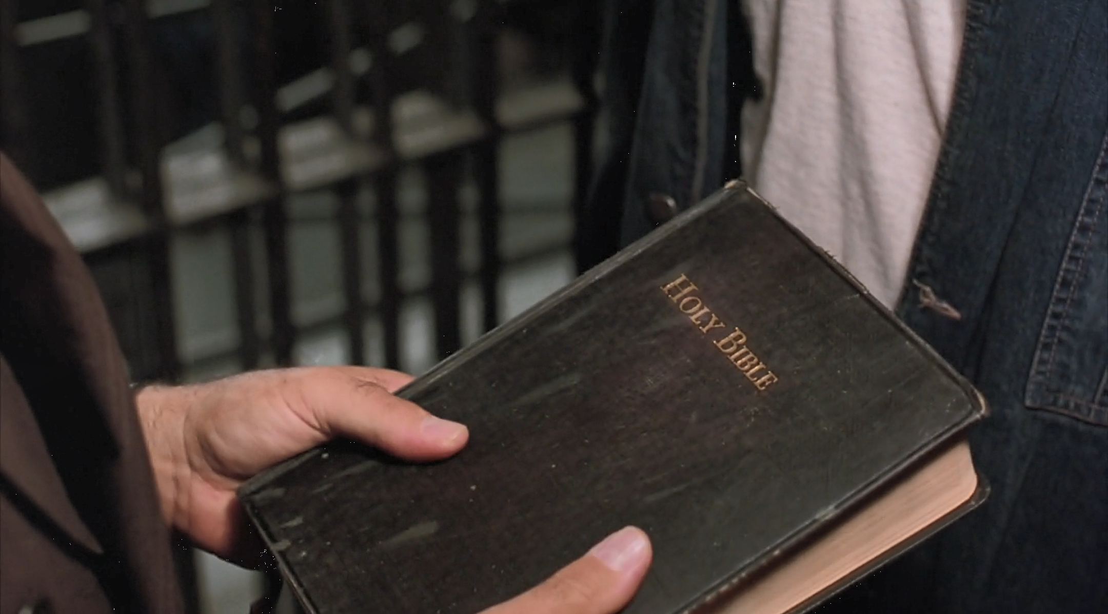 똑같은 성경을 어떻게 다르게 사용하느냐에 따라 전혀 다른 인생의 기로가 펼쳐진다. 노튼은 성경을 무기로 성경 뒤에 숨어 자신의 권력을 남용하는 데 집중하고, 앤디는 성경의 말씀과 함께 성경을 ‘물질’로 이용한다. 앤디에게 성경은 또 하나의 리타 헤이워드였고, 자신의 진짜 자아를 잠시(10여 년 동안!) 은폐하기 위한 영혼의 베일이었다.