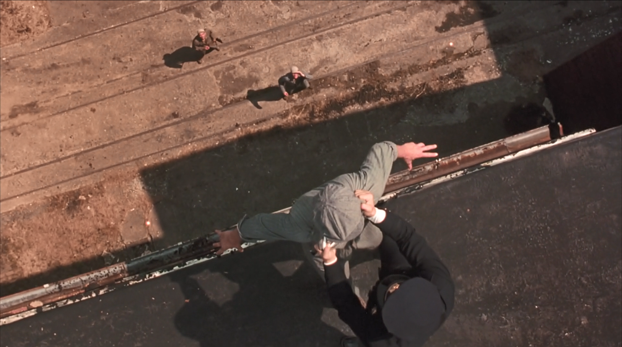 간수에게 무슨 봉변을 당할까 걱정이 된 레드는 앤디를 말려보지만 이미 앤디는 간수에게 다가가 말을 거는 중이다. 갑자기 밑도 끝도 없이 앤디가 던진 질문은 난감하기 이를 데 없었다. “하들리 씨. 아내를 믿으십니까?” 하들리는 갑자기 자신에게 꽂힌 난데없는 질문에 놀라 앤디의 멱살을 맞잡고 지붕 끝으로 몰아세운다. 일촉즉발의 순간, 간수가 멱살을 잡은 손만 놓으면 앤디는 지붕 밑으로 떨어져 즉사할 참이다.