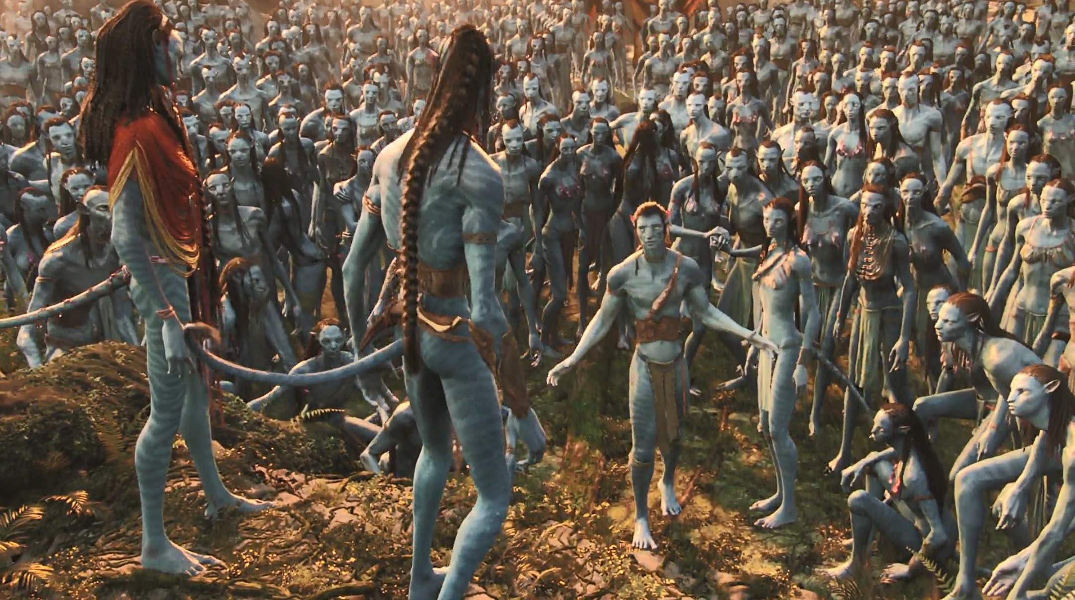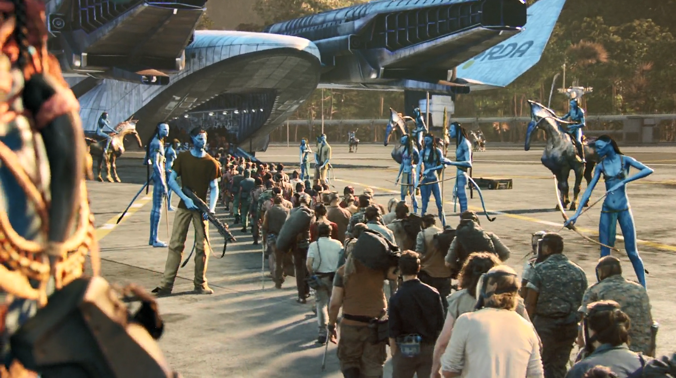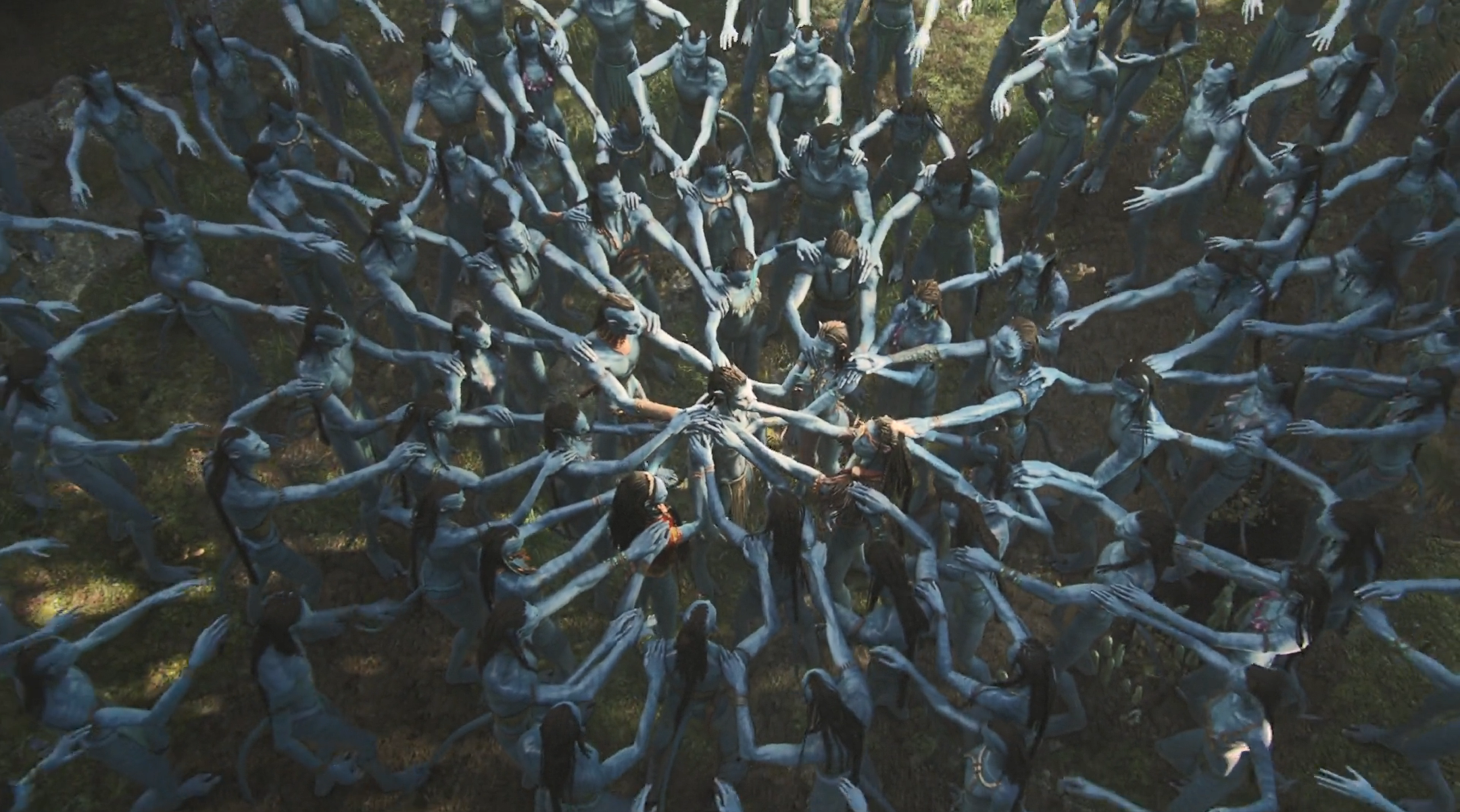 인간들의 일방적인 우위로 점쳐지던 전세는 뚜껑을 열어보니 막상막하다. 신기하게도 이크란을 타고 오직 한 명씩 움직이는 나비족의 공군은 결코 거대한 헬리콥터와 미사일에 밀리지 않는다. 오직 기계에 의지하는 인간들과 달리, 진심 어린 절박함 때문이 아니라 나비족에 대한 혐오와 적개심만으로 일방적인 살육의 행렬에 나선 인간들과 달리, 나비족은 한 명 한 명이 극한의 절박함과 극한의 전투의지로 충만하다. 나비족은 오직 혼자 날고 오직 혼자 죽을 준비가 되어 있기에, 판도라를 지켜야 자신의 가족과 부족을 지킬 수 있기에, 명령에 따라 기계적으로 움직이는 인간 병사들의 마음과는 완전히 다른 차원에서 움직인다. 나비족은 미약한 개인을 거대한 조직으로 통합하는 것이 아니라 한 사람 한 사람이 곧 부족 그 자체의 힘을 발휘한다. 무엇보다도 나비족은 ‘샤헤일루’를 통해 주변의 모든 생물을 자신의 영혼과 링크시킨다. 판도라의 동식물 하나하나, 돌멩이 하나까지도 자신의 편으로 만들 준비가 되어 있는 것이다. 그들에게는 한 명 한 명의 전사가 곧 나비족이며 판도라이며 세계 그 자체인 것이다.