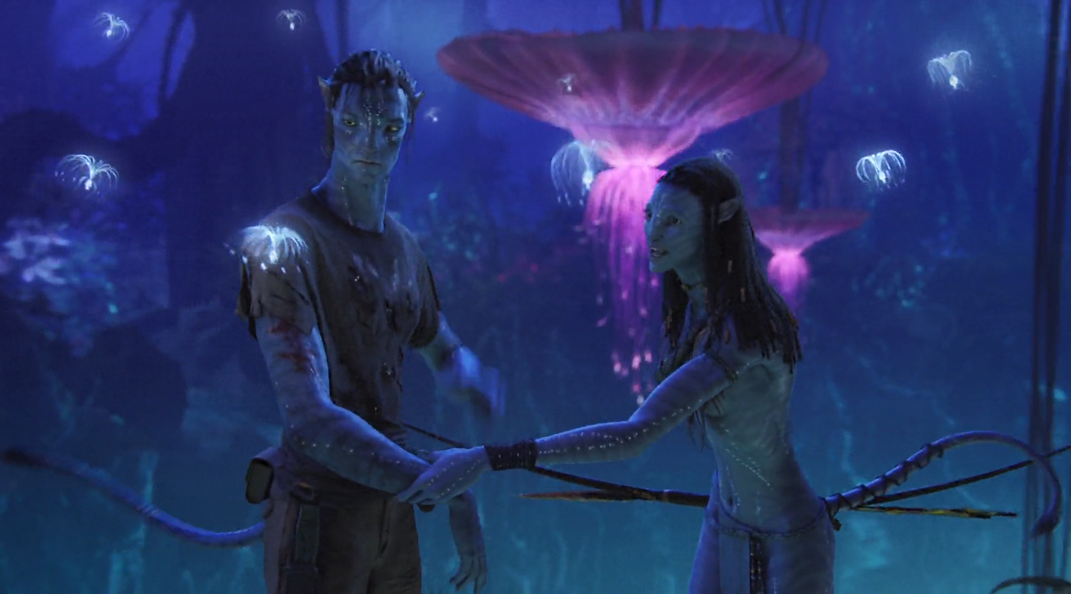 이제 아바타와 조종사 사이의 ‘링크’란 필요 없게 되었다. 아바타와 원본 사이의 구분도 없어져버렸다. 네이티리가 완전한 믿음의 눈빛으로 제이크를 바라보는 순간, 그녀가 “I see you”라고 말하는 순간. 그녀는 인간 사회가 부여한 정체성으로 만들어진 ‘제이크’가 아니라, 지금 내 눈앞에 있는 너를 너 자체로 본다. 인간이었던 너, 문명의 도구였던 너, 문명의 낙오자였던 너, 스파이였던 너, 불구자였던 너, 그 모두를 잊고 나만을 바라보는 너를, 내가 이렇게 보고 있다. 온 힘을 다해. 온 마음을 다해. “I see you”는 닳고 닳은 “I love you”보다 훨씬 깊고 넓은 파장으로 관객의 가슴 속에 새로운 감성의 우물을 파헤진다. 누군가 그런 눈빛으로 “I see you”를 속삭여준다면, 우리는 정말이지 그 눈빛에 기꺼이 익사할 수도 있을 것 같다.
