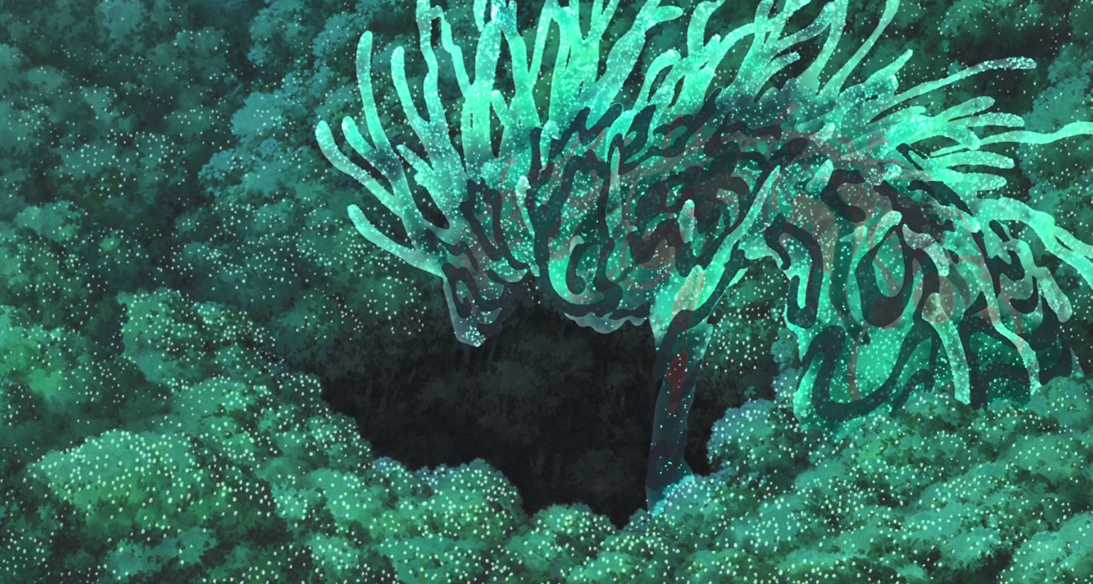 『원령공주』에서 미야자키 하야오가 그려낸 숲의 수호신 시시신은 아마도 바슐라르적 몽상의 힘이 다다를 수 있는 상상력의 극단일 것이다. 생명력으로 충만하던 원령공주의 숲에 밤이 깃드는 시간. 시시신이 거대한 몸집을 지닌 푸르고 투명한 데다라신의 모습으로 변해 아름다운 숲을 거니는 모습은 실로 장관이다. 몽상의 세포가 깨어나는 시간. 대지와 휴식의 몽상이 시작되는 순간이다. 아시타카는 시시신의 물속에서 치유의 밤을 맞이하고 있다. 사경을 헤매는 아시타카 가까이로, 시시신이 천천히 움직일 때마다 그의 발자국 위에 아름다운 꽃과 식물이 피어난다. 시시신이 아시타카의 상처를 천천히 핥아주자 사경을 헤매던 아시타카는 거짓말처럼 상처를 딛고 일어난다.