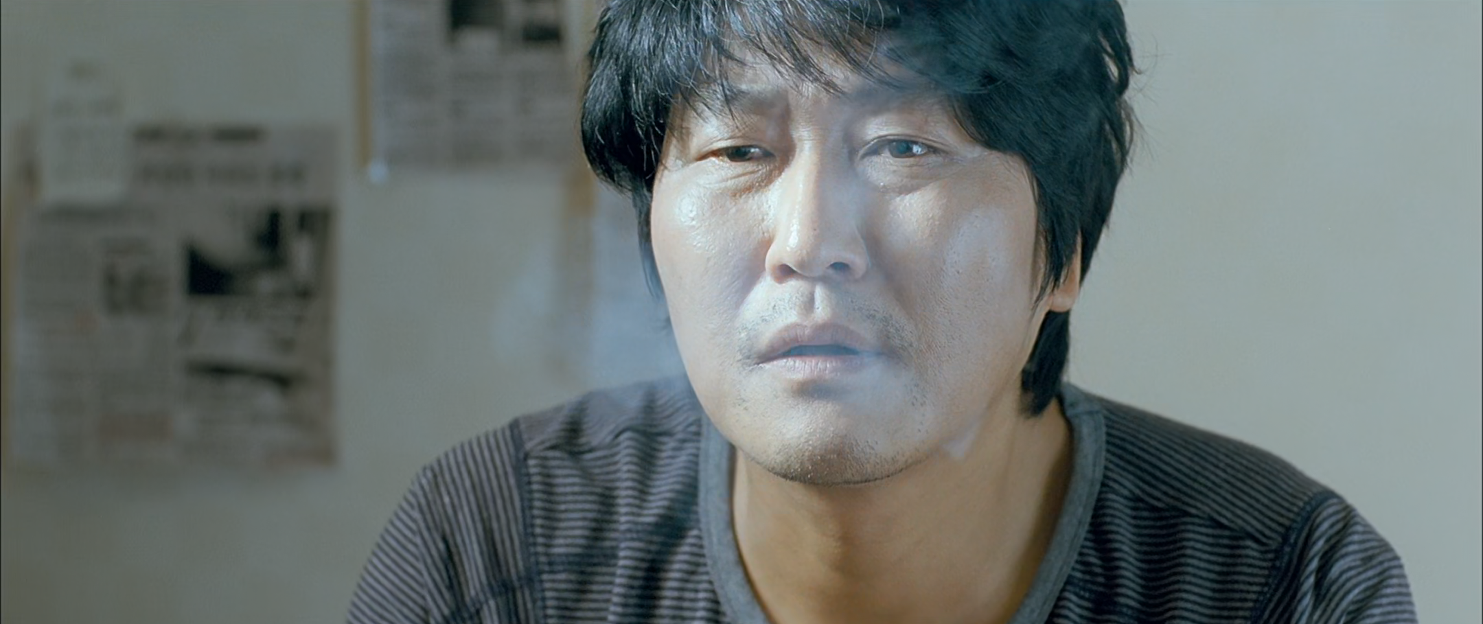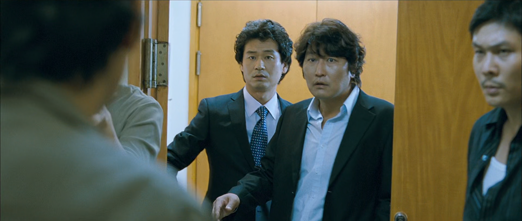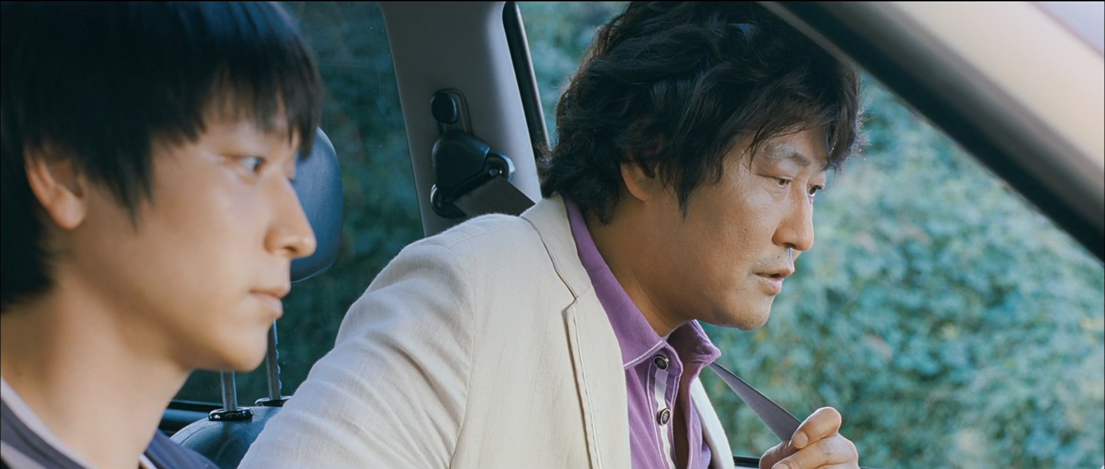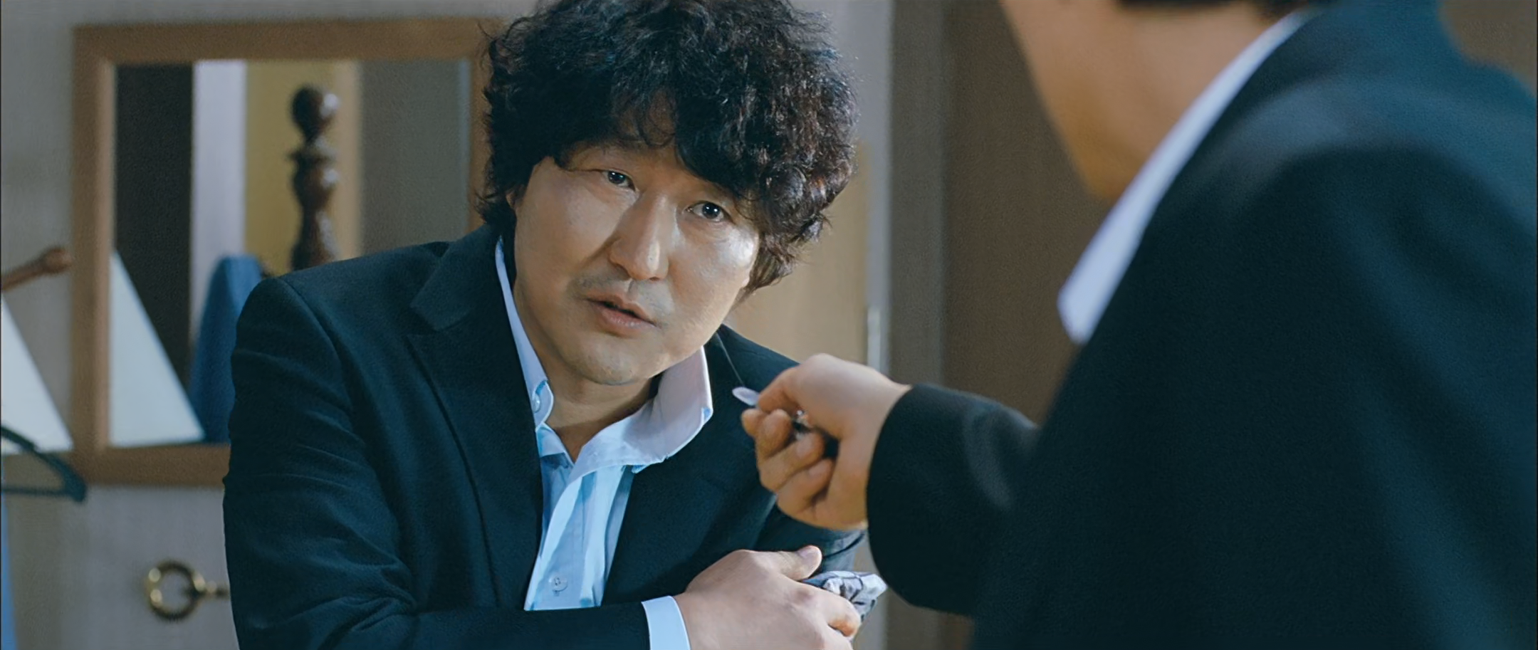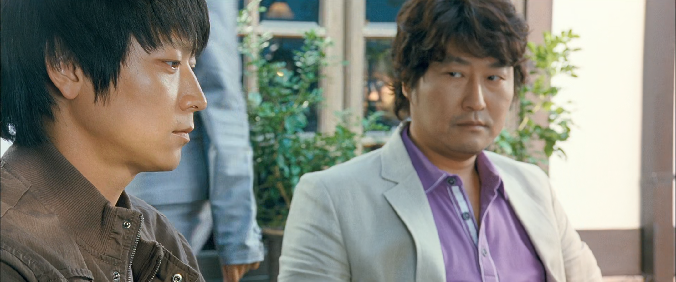 송지원의 얼굴에 고인 이야기의 빛이 외부의 어떤 이물질에도 손상되지 않는 투명한 빛이라면, 이한규의 얼굴에 고인 이야기에서는 언뜻 좀처럼 이렇다 할 ‘빛’이 우러나오지 않는 듯 보인다. 그는 얼핏 일상에 적당히 찌들고 세속에 웬만큼 물든 전형적인 40대 남자처럼 보이는 것이다. 그의 얼굴에는 『우아한 세계』의 조폭 아버지가 딸린 식구들을 먹여 살리기 위해 참아야 했던 참담한 굴욕이 남아 있고, 『살인의 추억』에서 잡히지 않는 범인을 지극히 ‘아날로그적인 방식’으로 끝까지 추격했던 박형사의 무대포식 집념도 섞여 있고, 『괴물』에서 아무런 힘도 무기도 없이 가족을 지키기 위해 온몸을 던졌던 선량한 아빠의 모습도 남아 있다. 물론 『넘버 3』나 『놈놈놈』에서 보여준 배꼽 빠지는 코믹 액션과 옹골찬 애드립의 기운도 남아 있다. 배우 송강호가 연기해온 이 모든 아버지와 아저씨와 남편의 자연스러운 집대성이 아마 『의형제』의 이한규일 것이다.